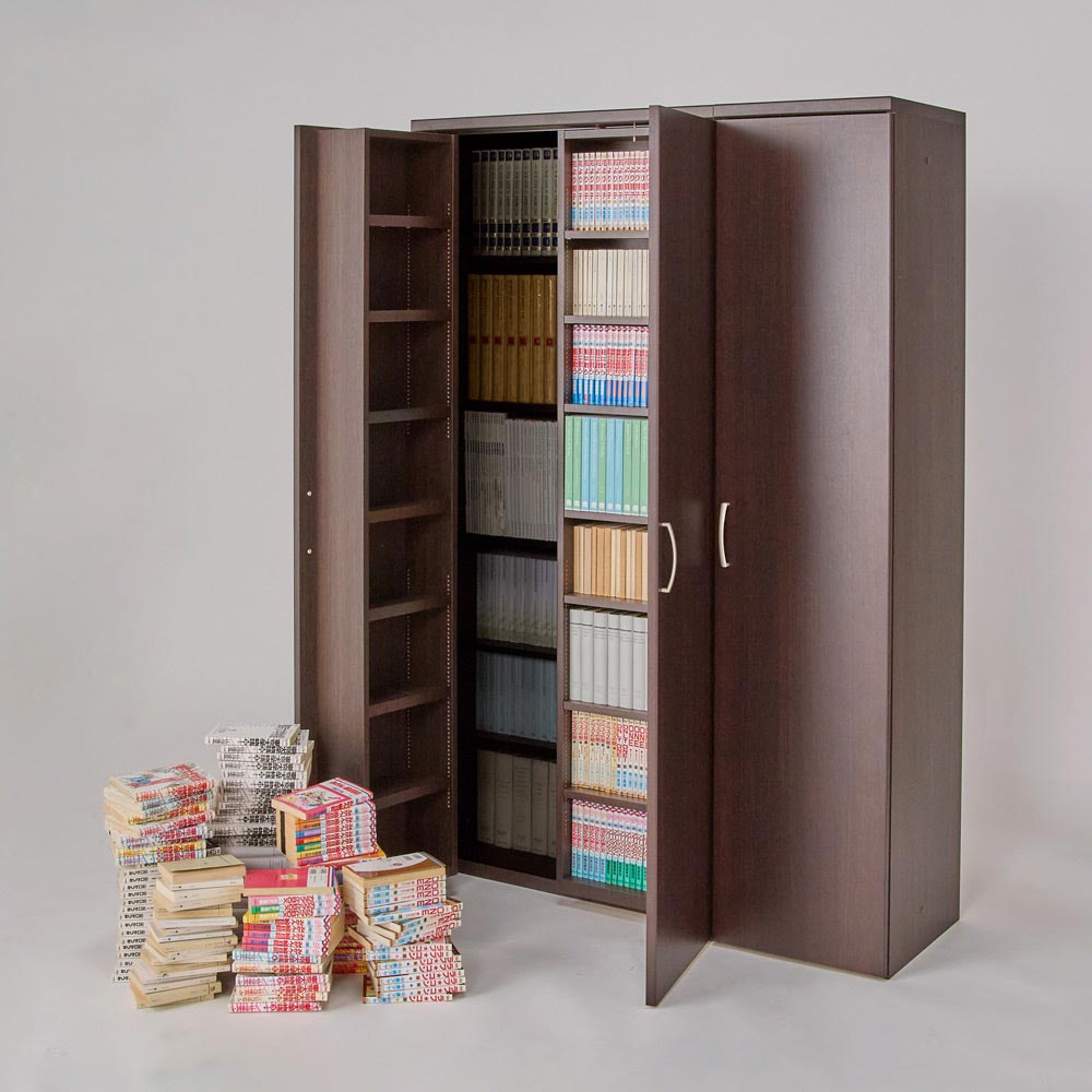 (ア)ダークブラウン 無駄の無い圧倒的収納力。コンパクトなお部屋でも多彩な本を集約でき、扉付きなので日焼けやほこりから守れます。