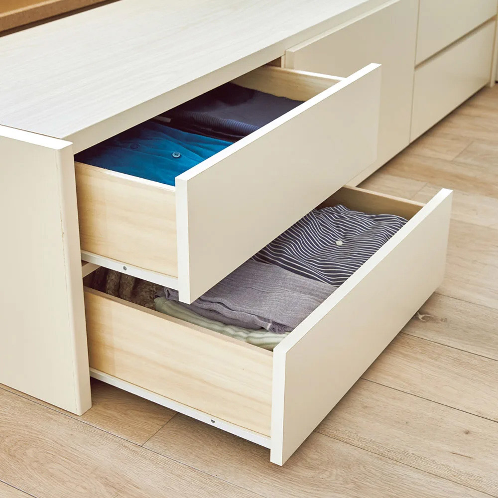 奥行も深さもたっぷりの引き出しは、頑丈で出し入れしやすく使い勝手抜群(ア)ホワイト