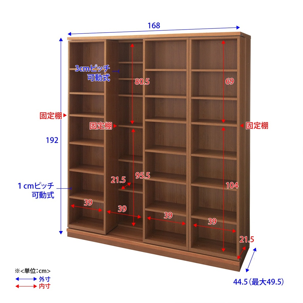 (ア)ダークブラウン 手前の棚は1cm間隔、奥は約3cm間隔で調節可能。