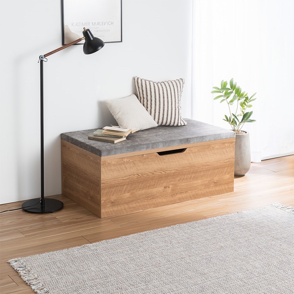 使用イメージ(イ)ダークブラウン リビングの窓辺に置いて、読書する窓辺のくつろぎスペースとしても。 ※写真は別売りのフタ収納タイプ幅60cm、引き出し収納タイプ幅120cmの組み合わせです。