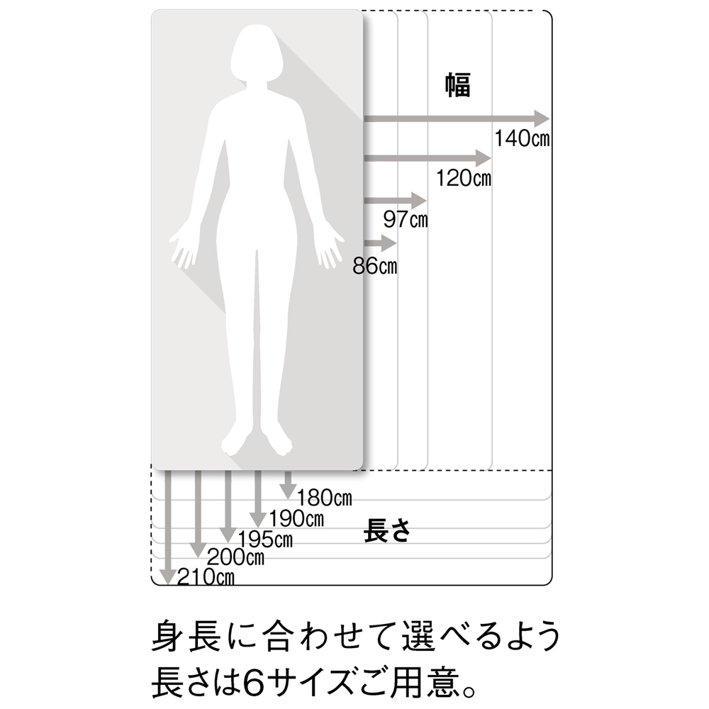幅76cmから140cmまで、長さも170cmから210cmまで計30種類のサイズを取り揃えています。