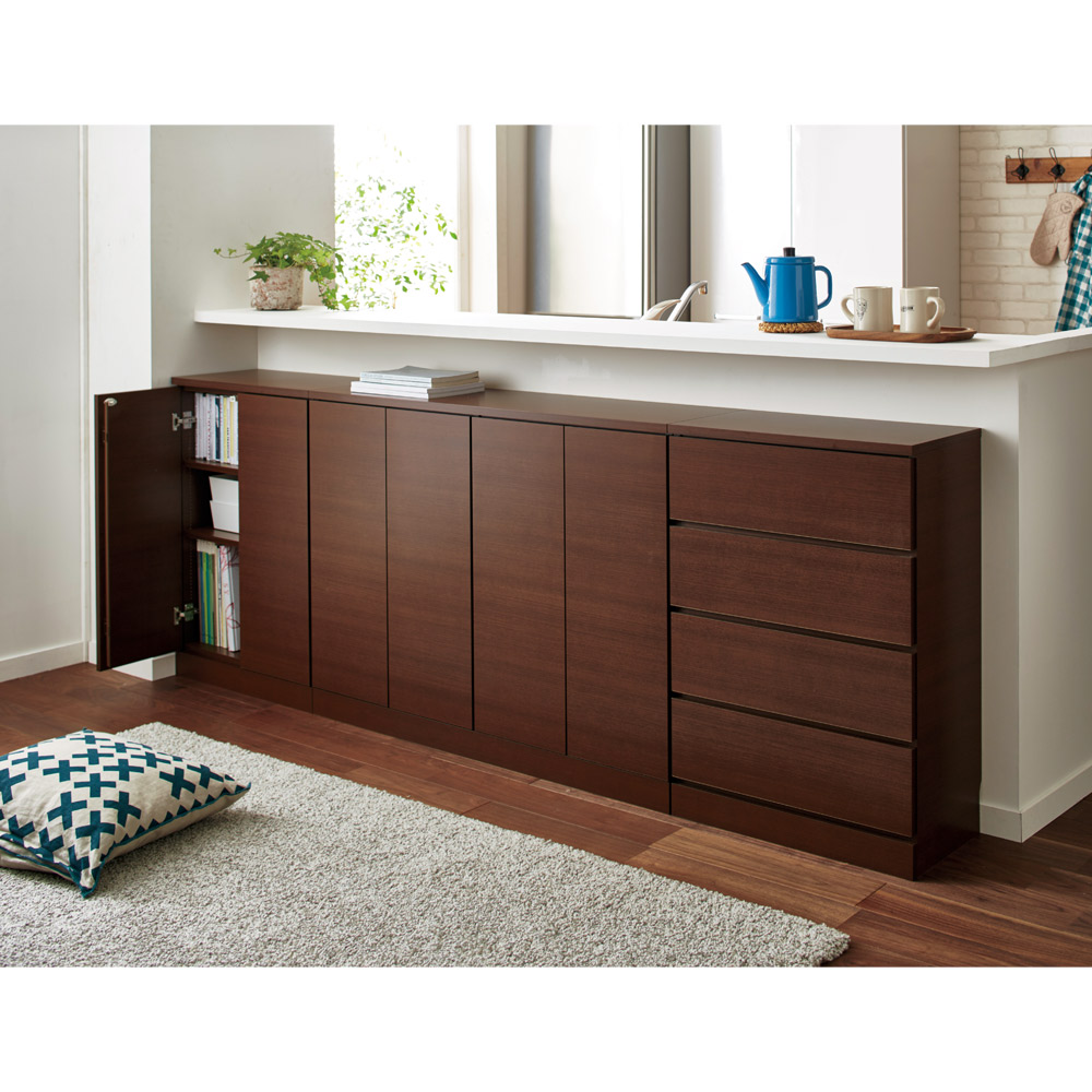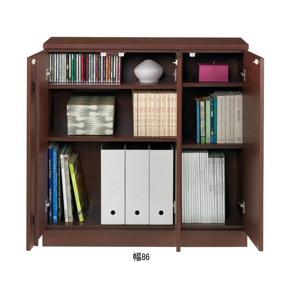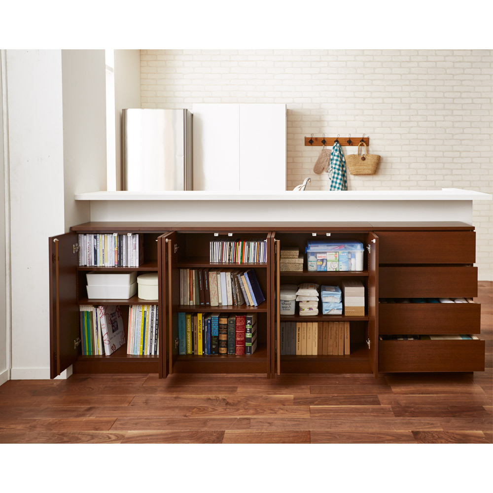 (ア)ダークブラウン リビングやキッチン回りの小物からA4本やCDまでおまかせ、頼もしい収納力を発揮します。 ※写真は幅86cmタイプです。お届けは幅58cmタイプです。