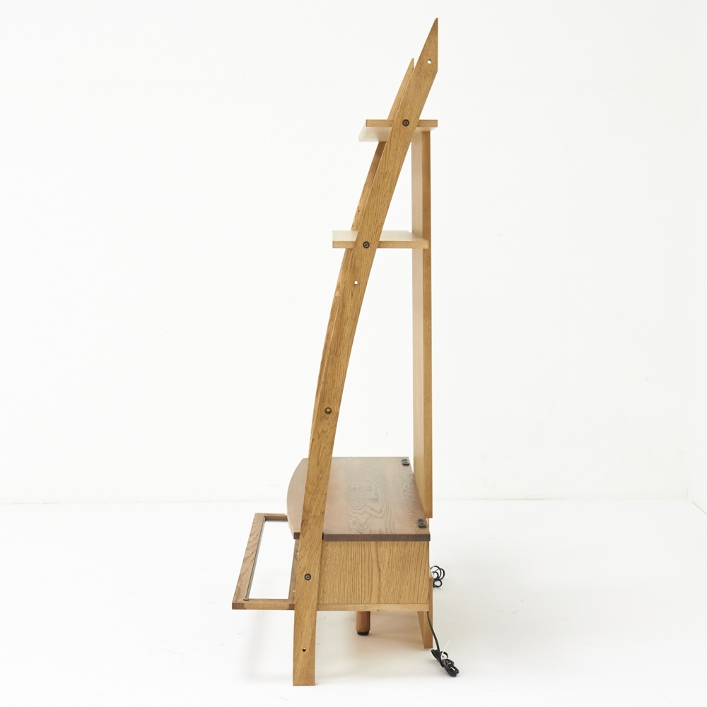 柔らかなフォルムがどこか北欧らしい温かみのあるデザインで、空間の心地よい開放感とアクセントに。(ア)オーク ※写真はキャビネット片開きタイプとの組み合わせ例。