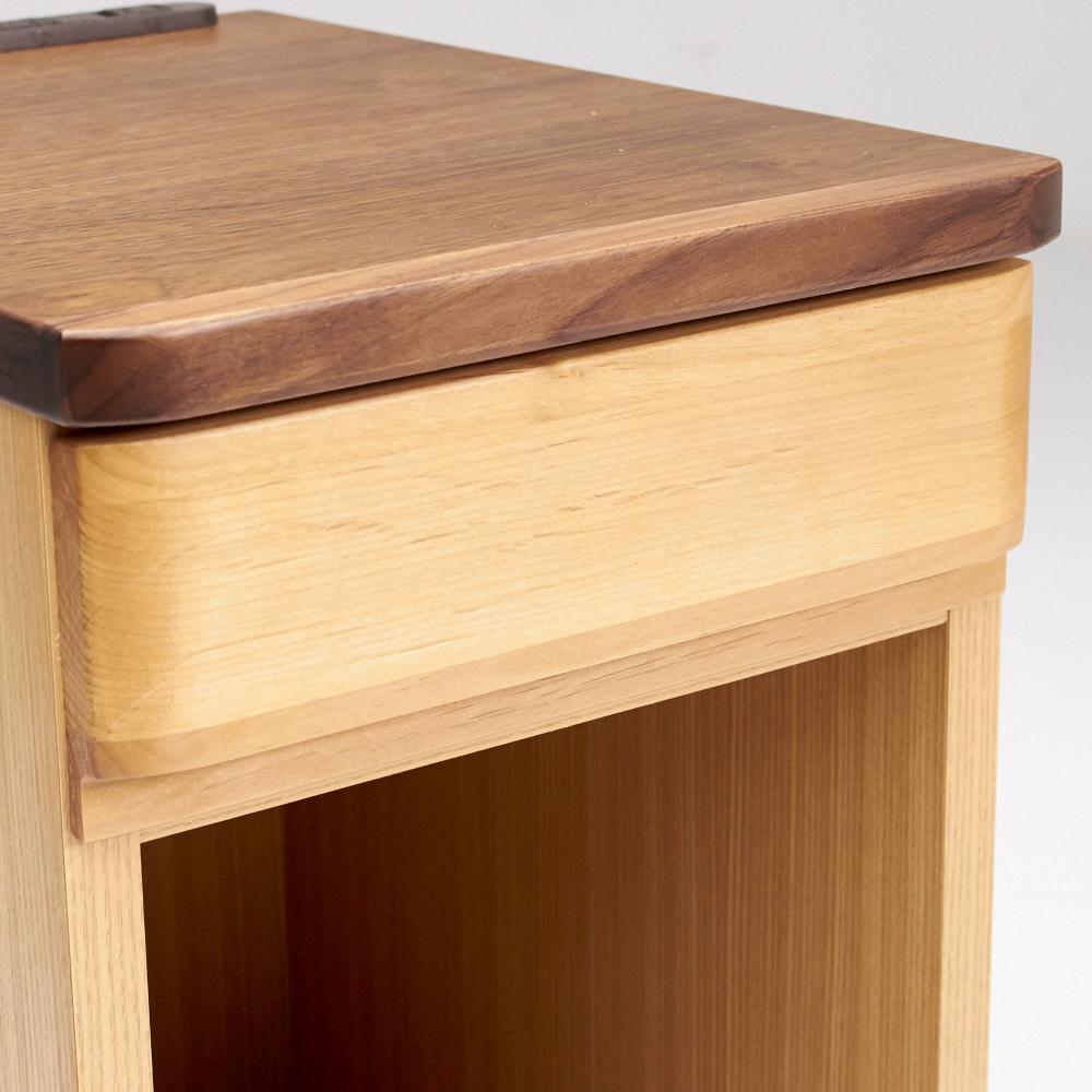 ●天板はウォルナット天然木、側面はタモ天然木を使用。