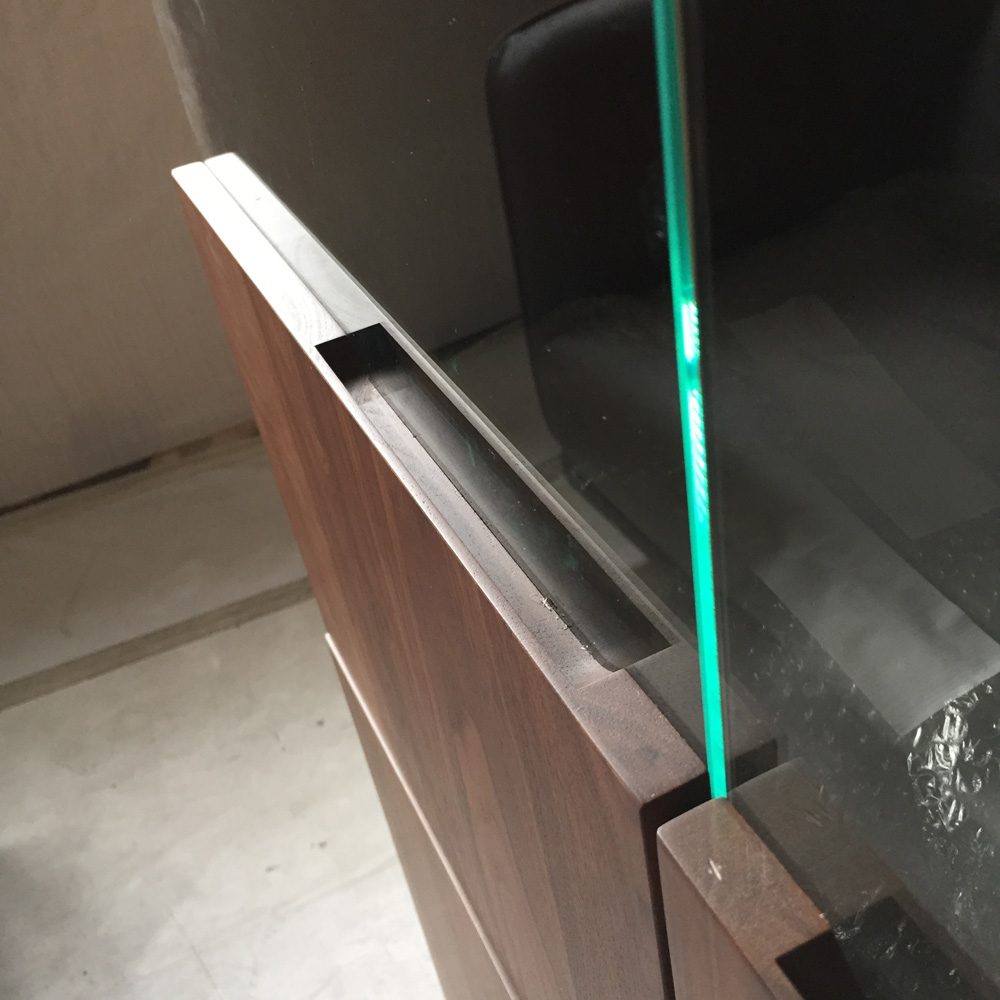ガラス付き扉は静かにゆっくり閉まるソフトクロージング仕様です。