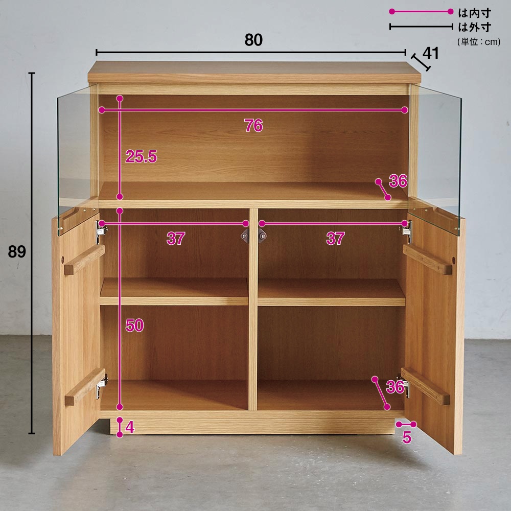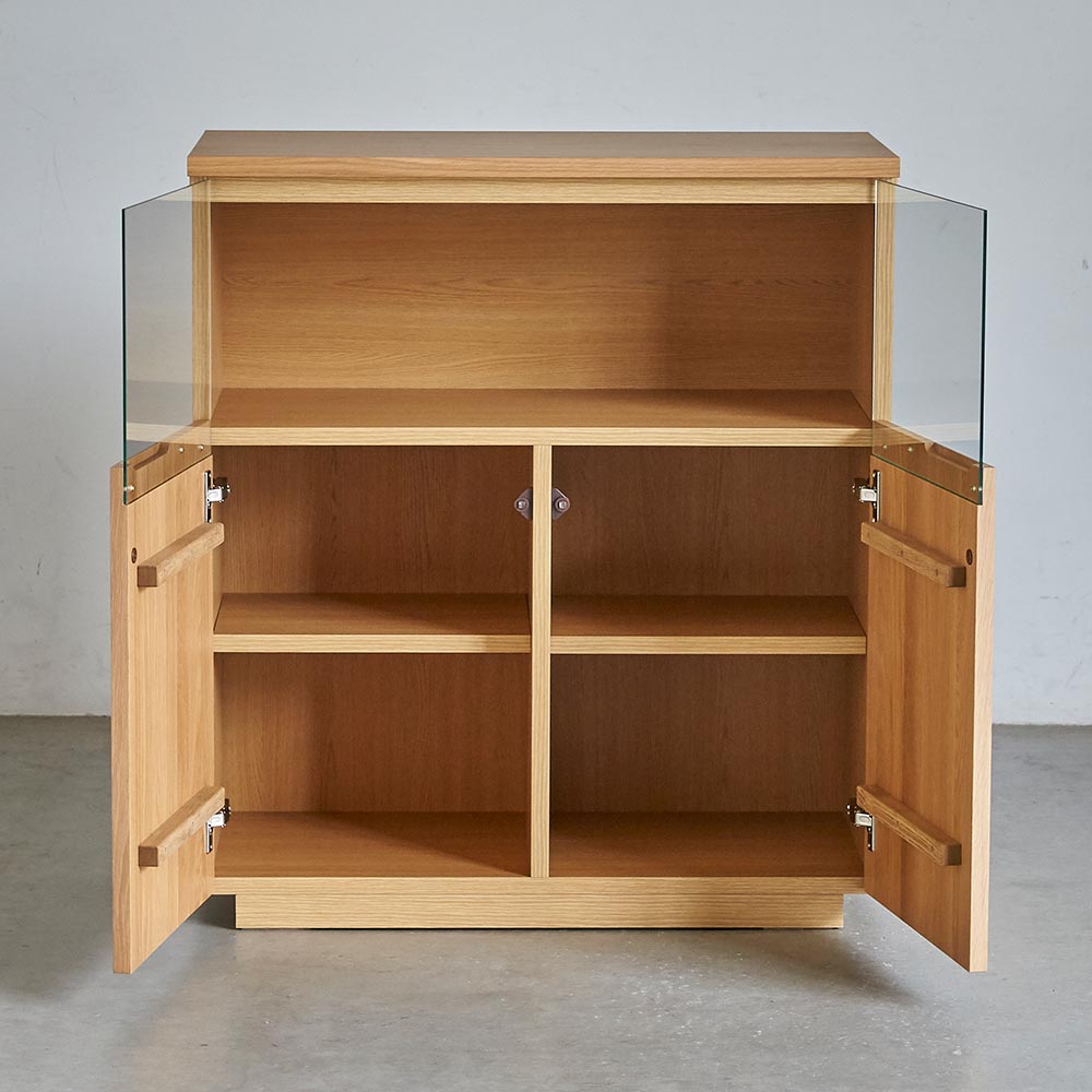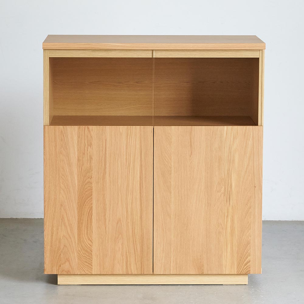 コーディネート例 ※お届けは右「LEDライト付サイドボード幅80オーク」です。 オープン時