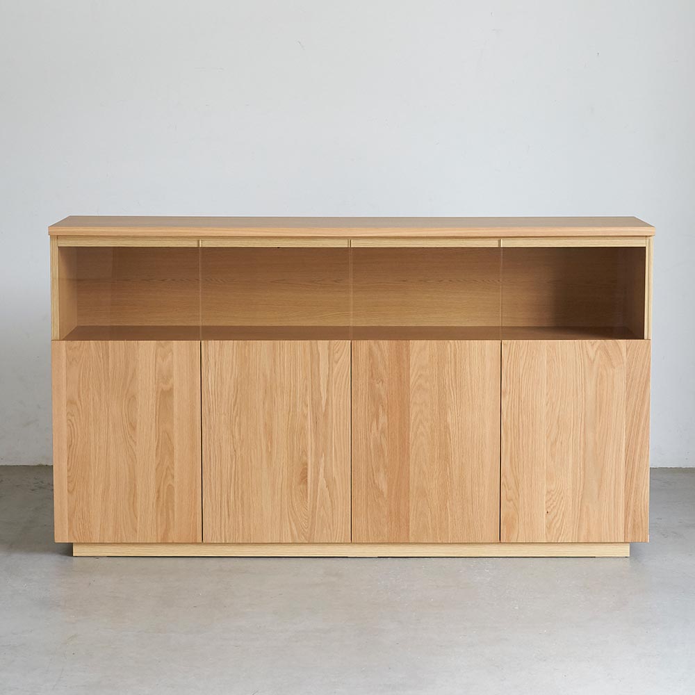 コーディネート例 ※お届けは左「LEDライト付サイドボード幅160オーク」です。 オープン時