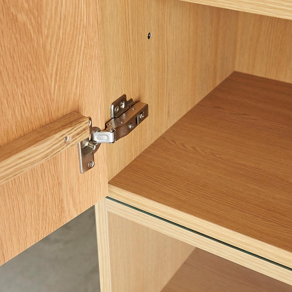 ガラス付き扉は静かにゆっくり閉まるソフトクロージング仕様です。