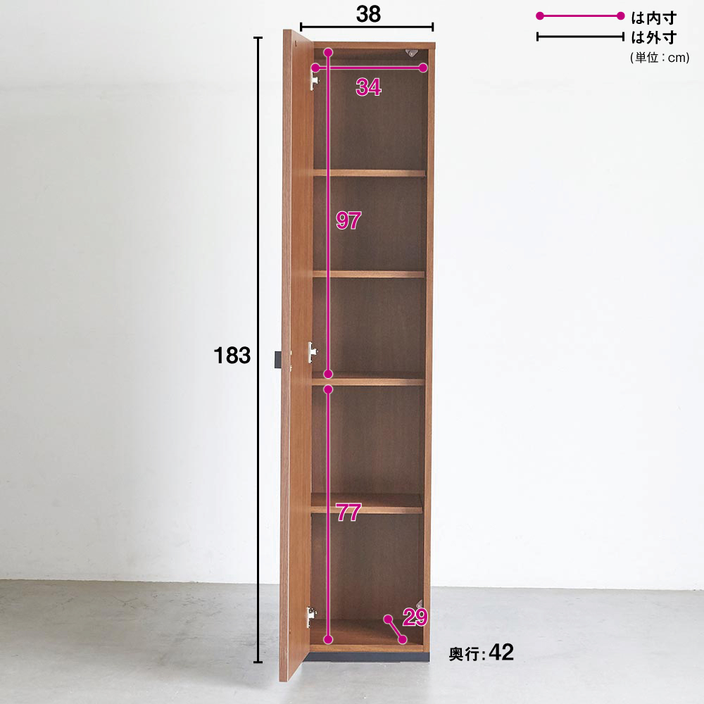 キャビネット 幅38高さ183cm 板扉※写真は左開きタイプです