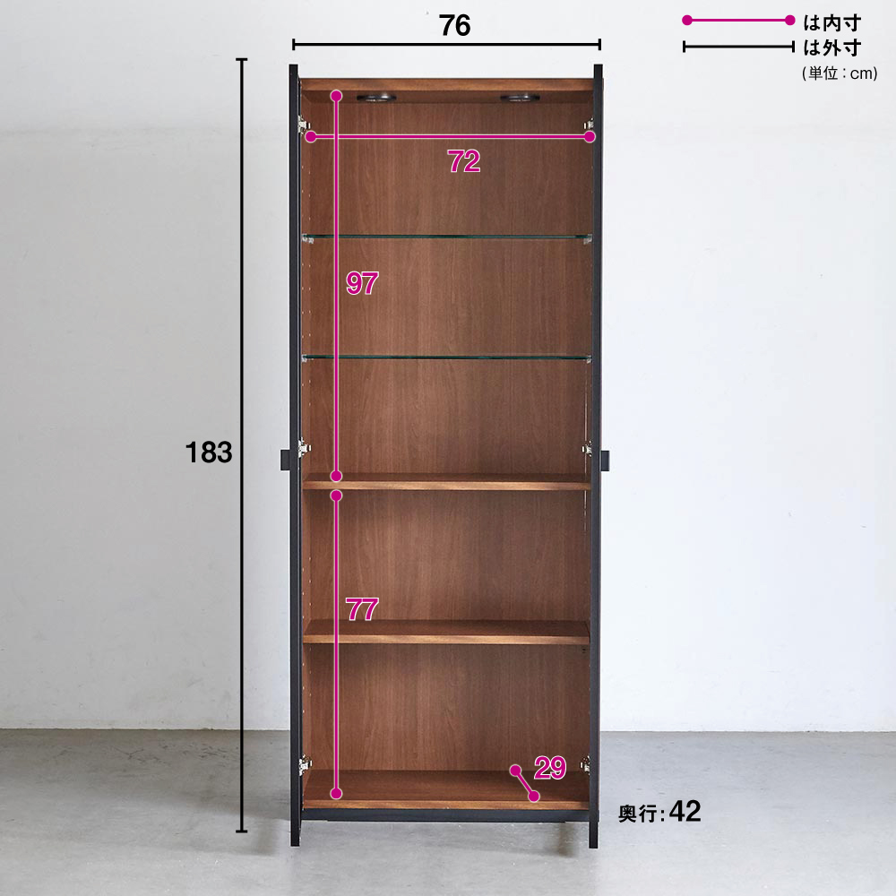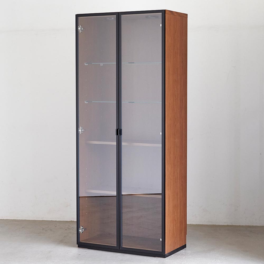 キャビネット 幅76高さ183cm ガラス扉LED