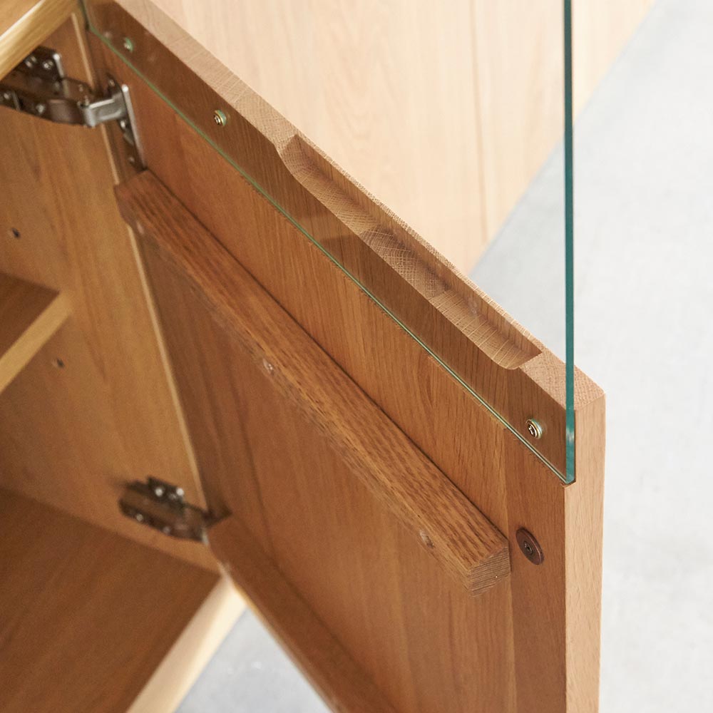 ガラス付き扉は静かにゆっくり閉まるソフトクロージング仕様です。