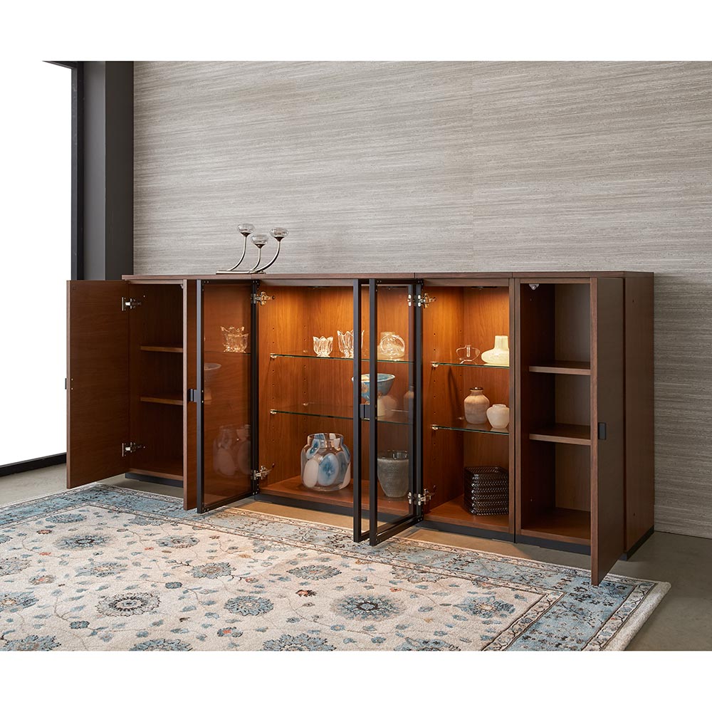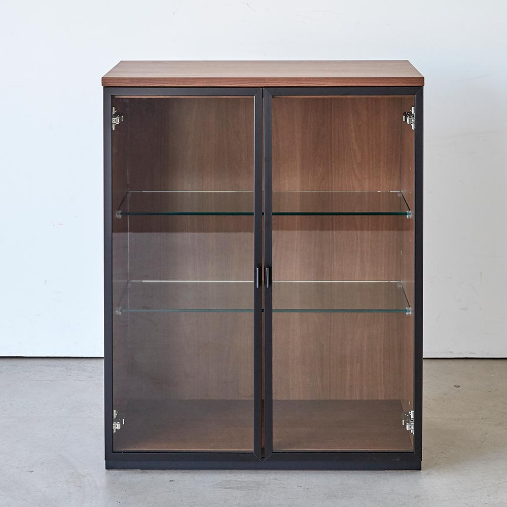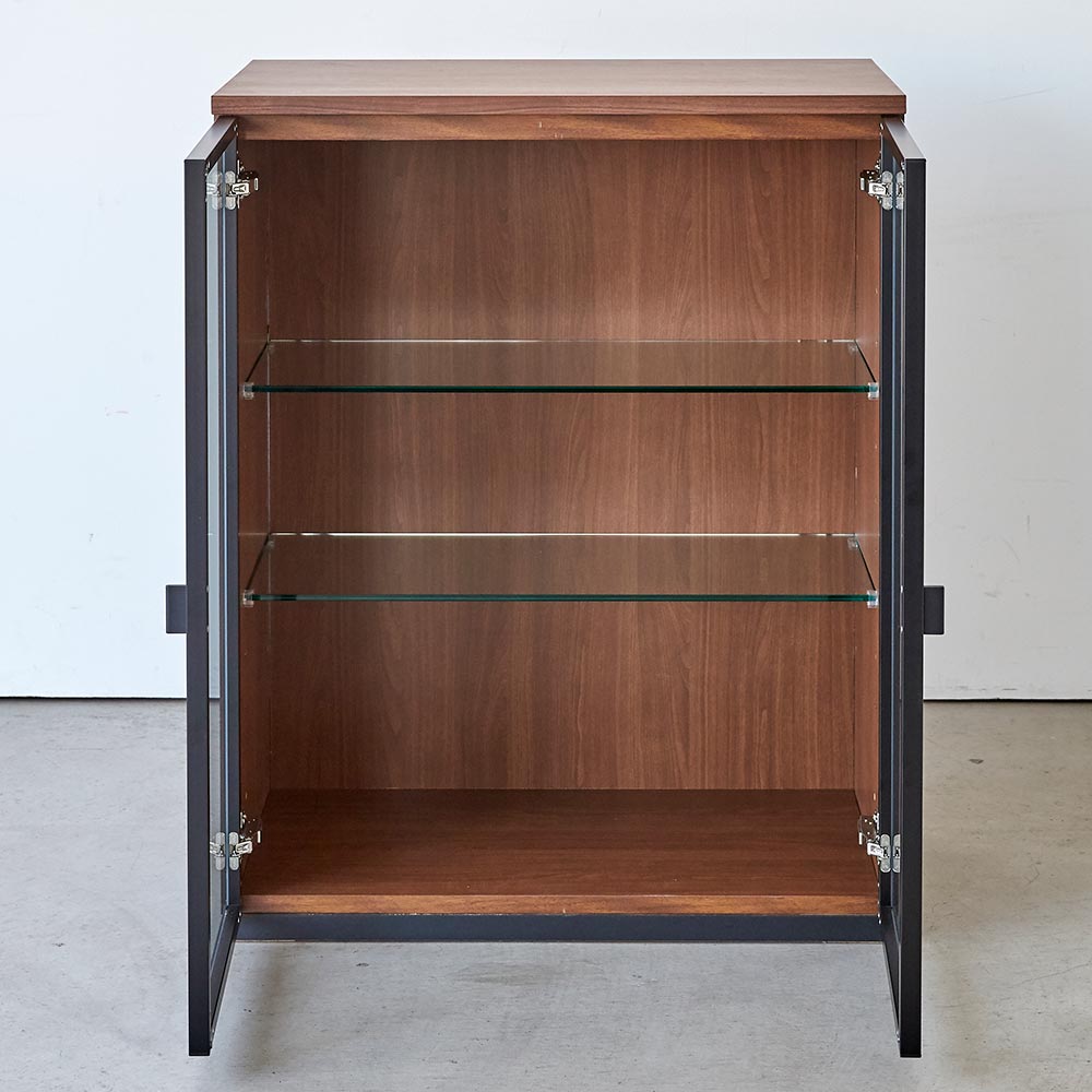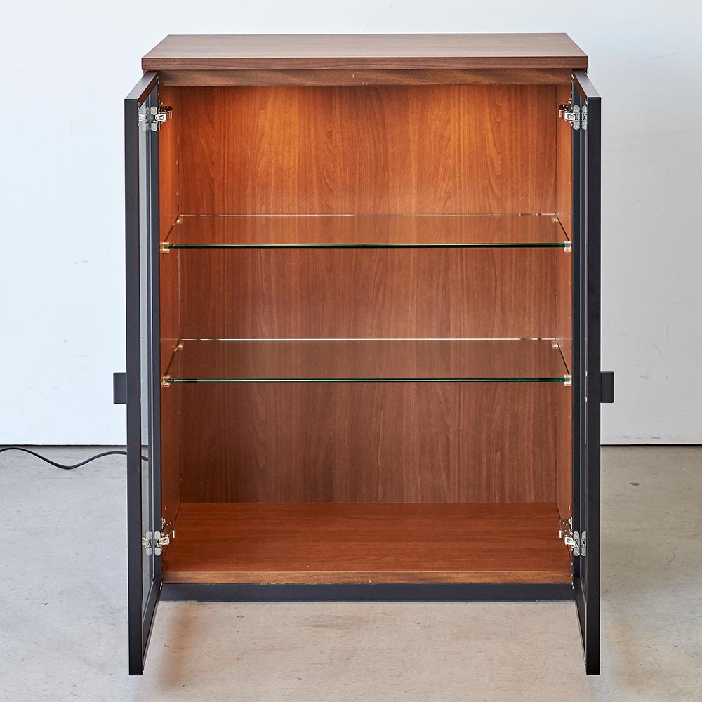 コーディネート例 ※お届けは「キャビネット 幅76高さ95cm ガラス扉LED」です。オープン時