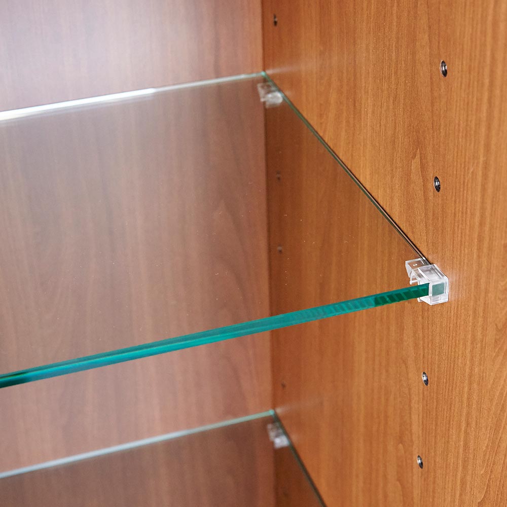 扉内のガラス棚板は6cmピッチで高さ調整できます。