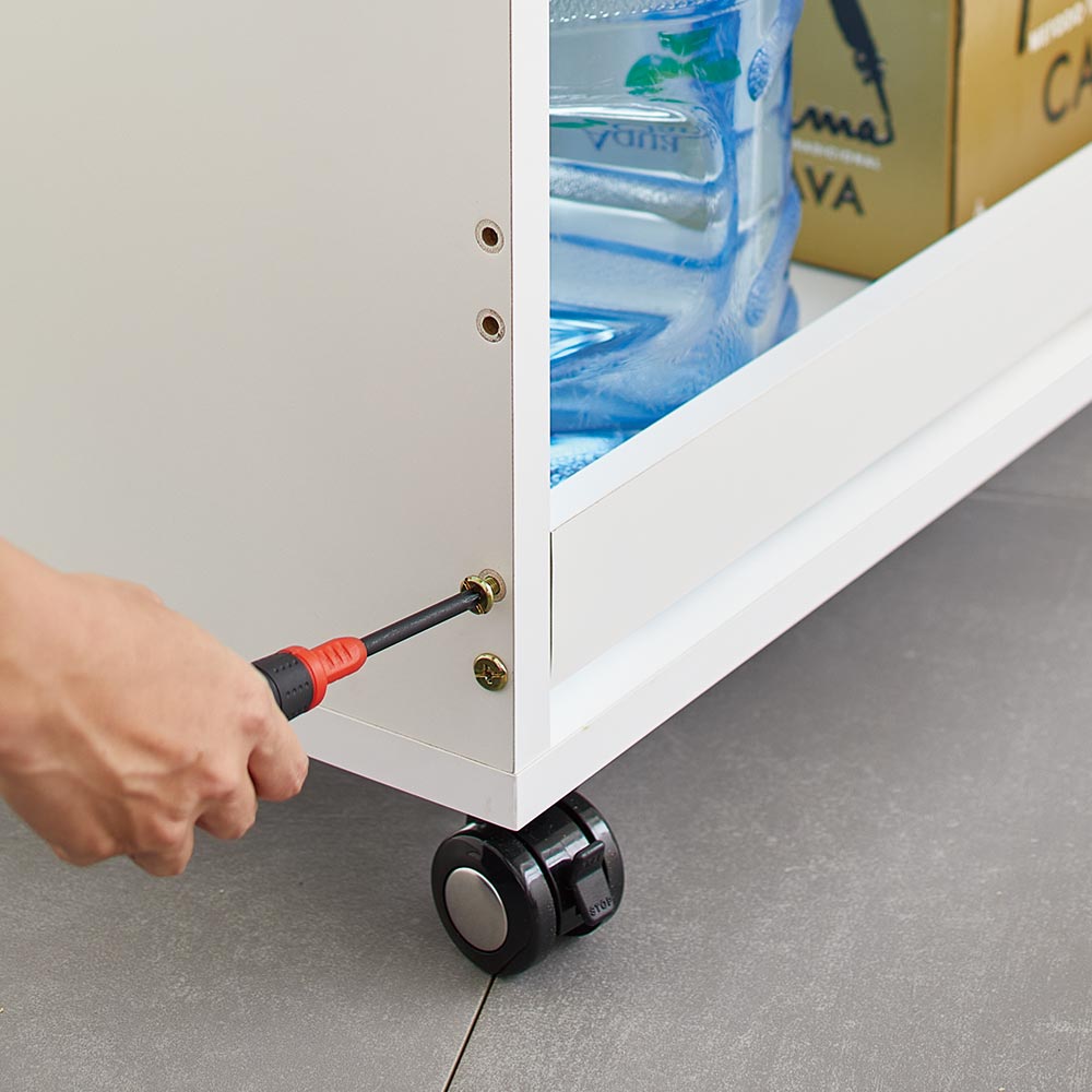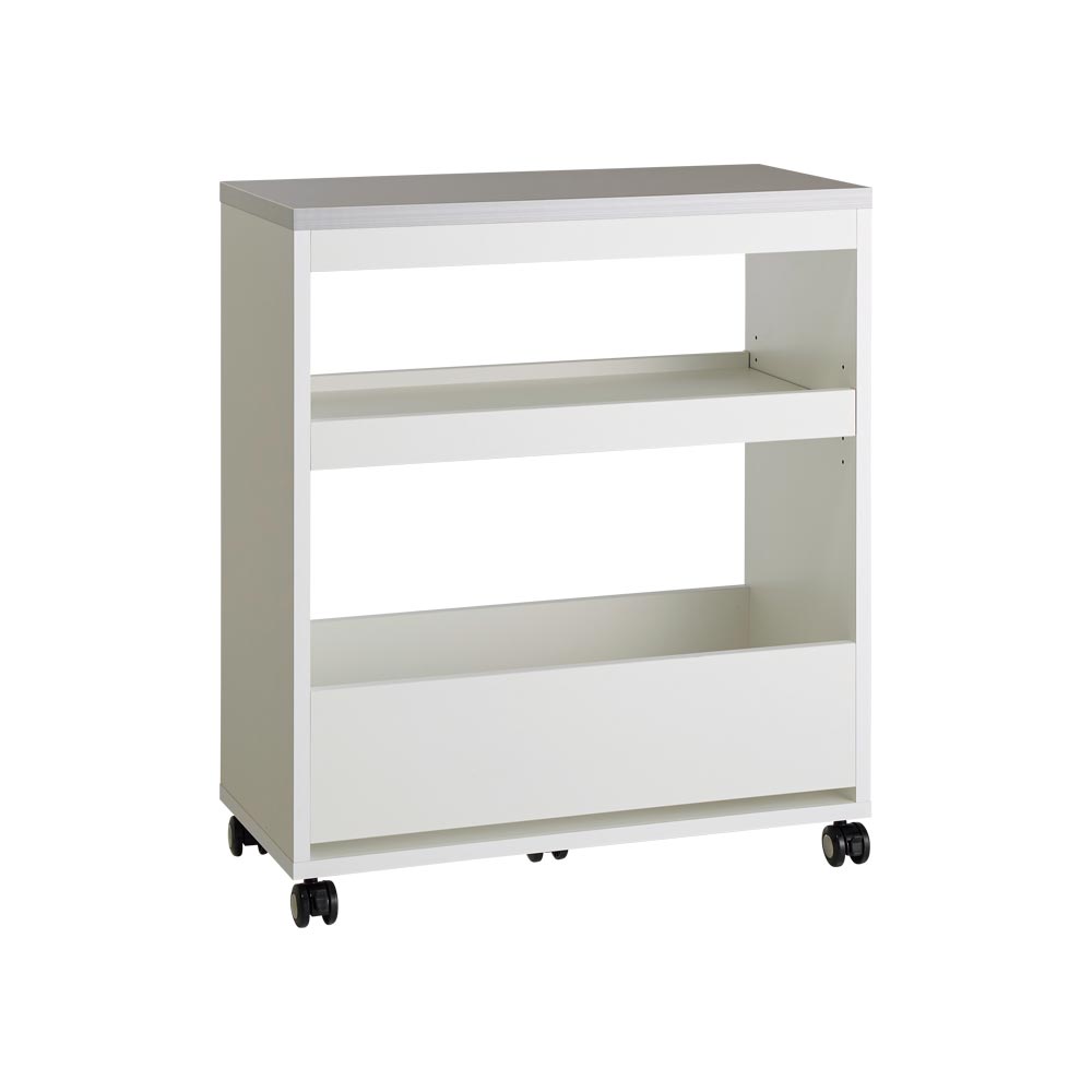 (ア)ホワイト 重たいガロンや段ボールをハイエンドなワゴンでスマートに保管。買いだめをまとめて収納できる頑丈ワゴンです。(※補強板を取り外した状態)