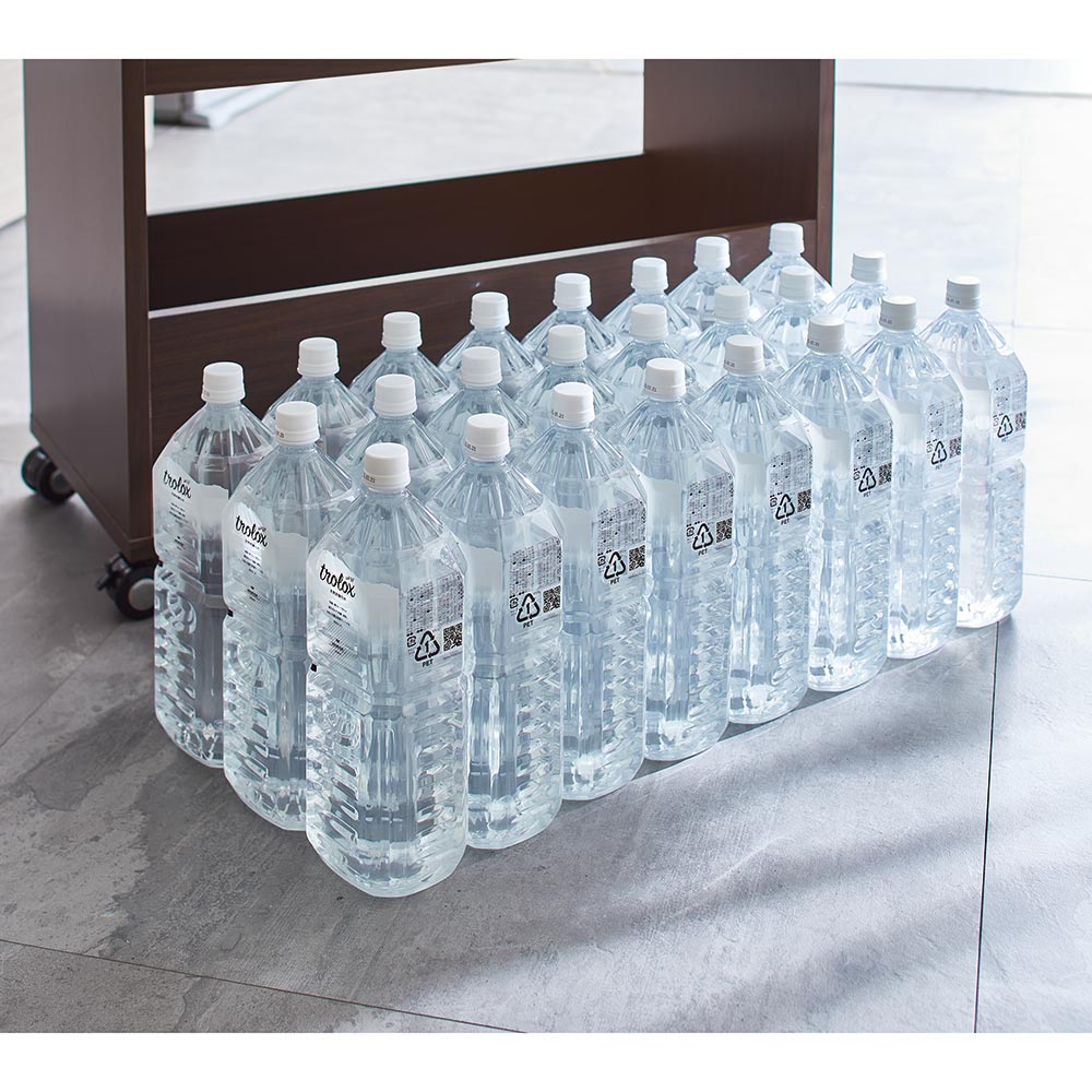 補強板2枚取付時、下段は50kgの重さに耐える頑丈さ!2Lペットボトル2ダース(24本)に相当します。