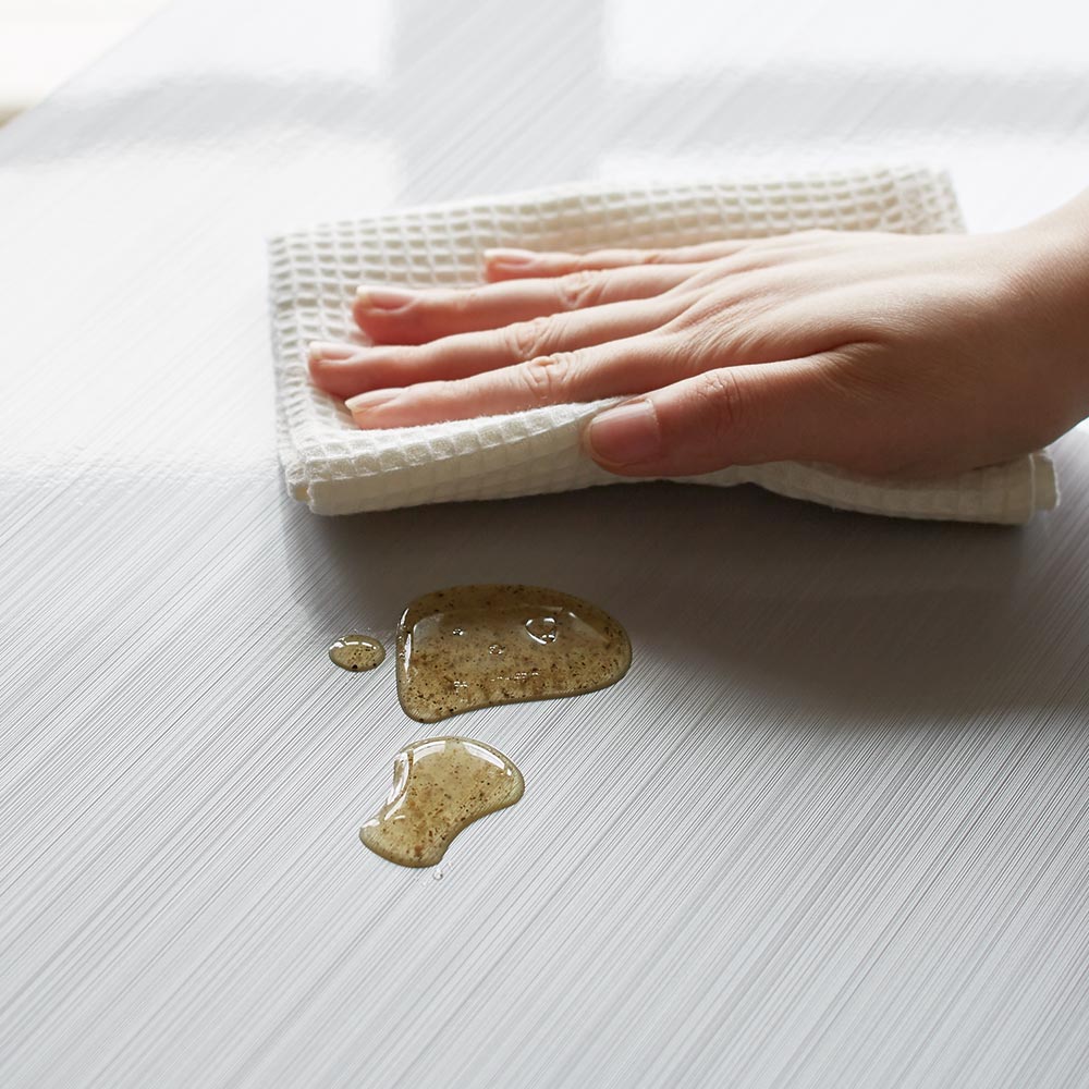 天板は清潔感のあるシルバーカラー。汚れの落ちやすいコーディングで水回りでの使用も安心。