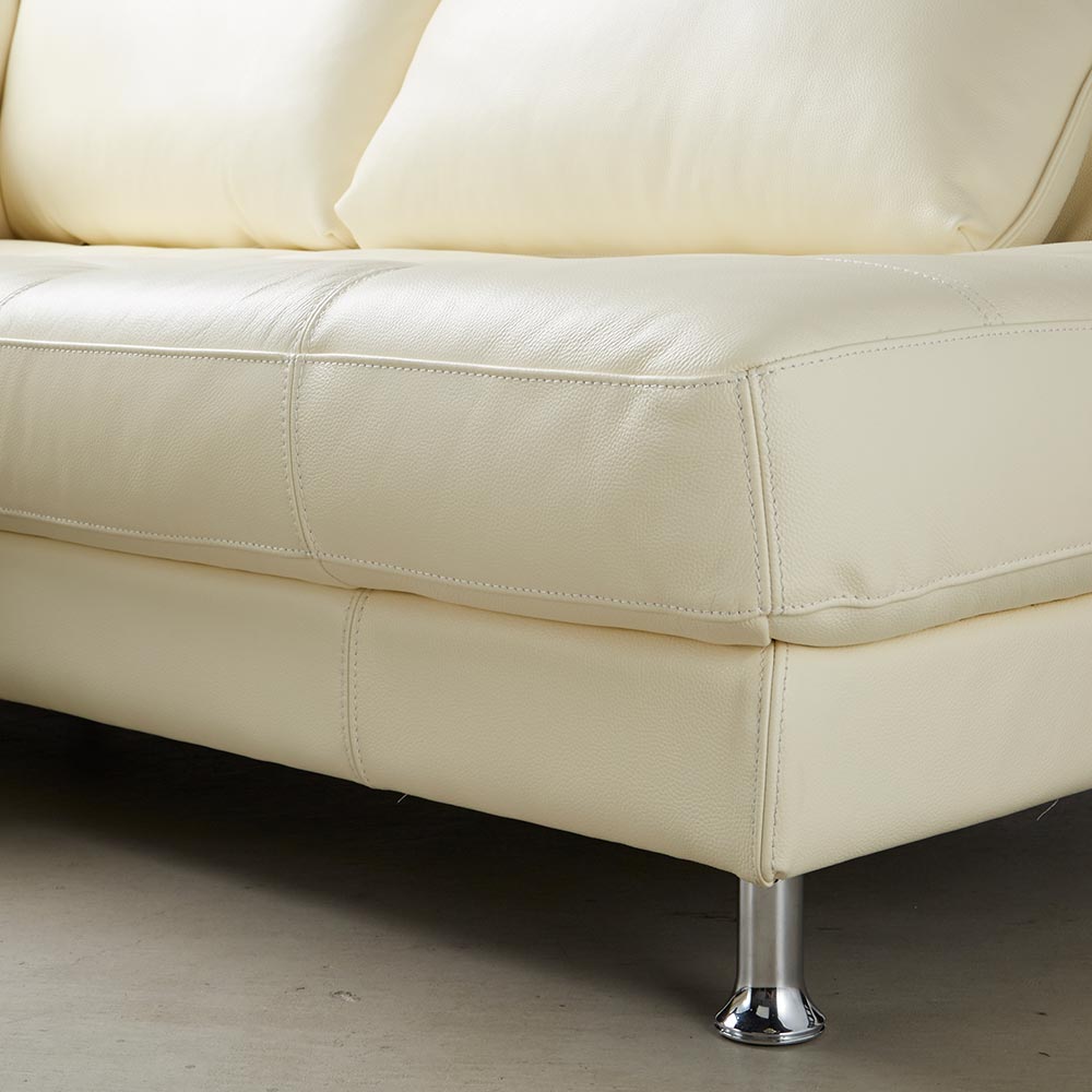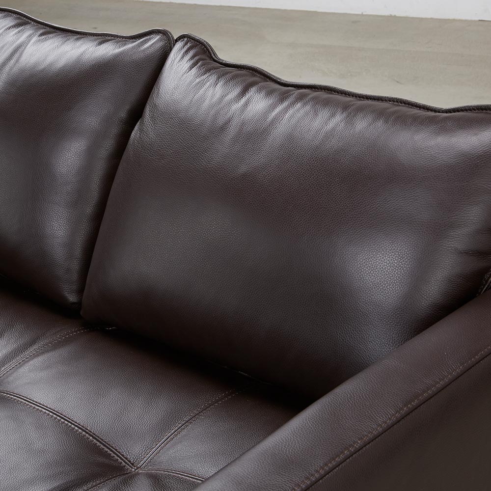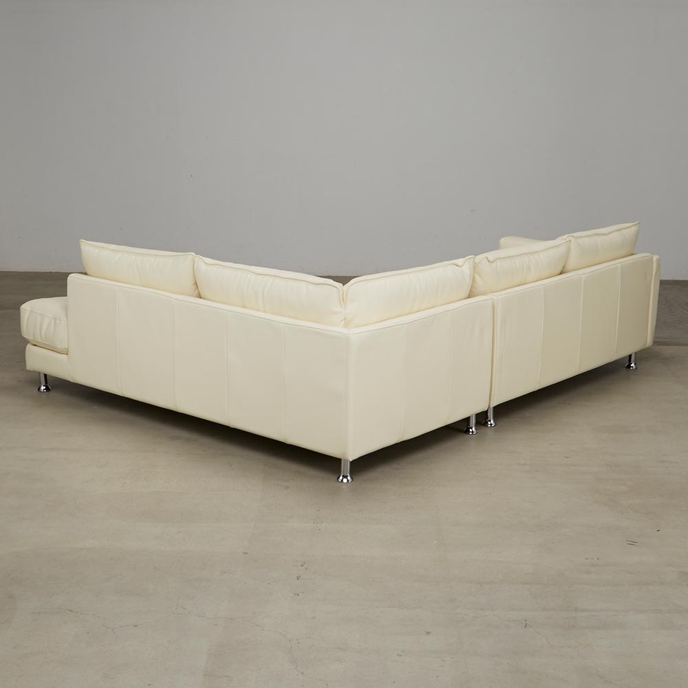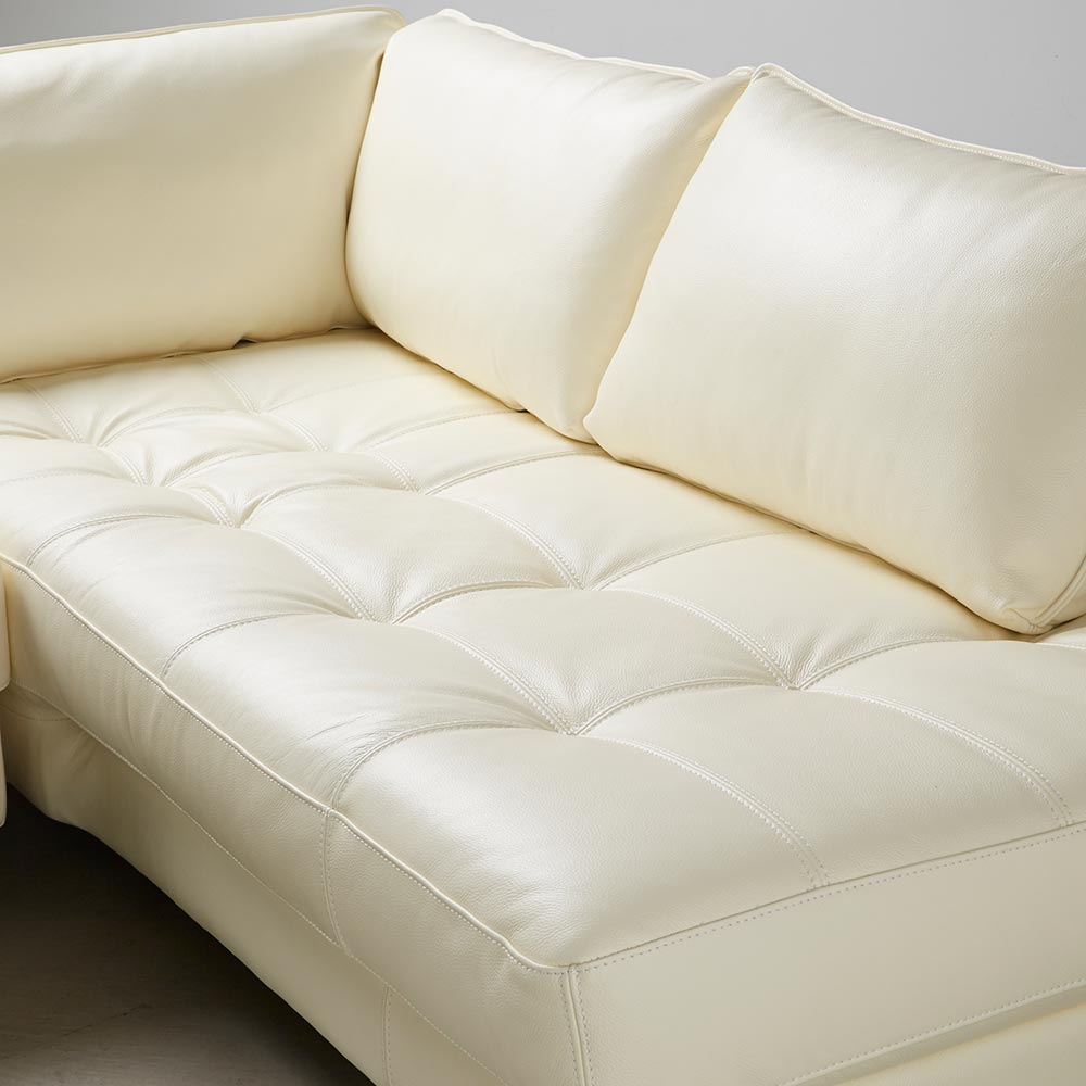 人気のソファがグレードアップ。丁寧にセミアニリン加工した約1.5mmの厚手の牛革を贅沢に使用しました。ハウススタイリングが信頼と実績のある中国のファクトリーとコラボレートしたソファシリーズ。素材の一貫生産による確かな品質と、高いコストパフォーマンスを実現したソファです。〜ディノス・ハウススタイリングのハイエンドのソファがさらにリニューアル〜2008年の発売からご好評をいただいているロングセラーの革張りソファ。今まで使用していた牛革が廃番になってしまったことで、厚くしなやかで上質な新しい革をまとって再登場です。〜定評のある牛本革を使用した総革張りソファ〜◎皮革メーカーとしても名高いファクトリーで生産され、その中で厳選された1.4〜1.6mmの厚手の牛革を使用した本革製ソファです。◎牛革は革本来の質感を味わえるかつお手入れもしやすいセミアニリン仕上げを施しています。◎側面、背面まで本革を使用した総革張りソファです。◎定番の2色、オフホワイト・ダークブラウンからお選びいただけます。 オフホワイト:真っ白ではなく、ほんの少し黄色味が感じられる上品で自然なカラーです ダークブラウン:ビターチョコレートのような、深みのある濃い茶色です◎背クッションは、継ぎはぎのない大判の革を使用した贅沢な仕様です。〜美しいフォルムが織りなすスタイリッシュなモダンスタイル〜◎シンプルなフォルムの美しさ、ダブルステッチでキルティングされた上質な牛革が更なるラグジュアリー空間を演出します。◎シャープなデザインの肘掛けと美しいクロムメッキのスチール製の脚部が絶妙なバランスの本革ソファーです。〜コンパクトながらワイドなリラックス感〜◎全体的にややロータイプにデザインされたL字のコーナーソファセットなのでお部屋に置いた時にシャープに見え、お部屋が引き締まります。◎広々とした座面サイズながら、お部屋に圧迫感を与えないすっきりとしたデザインです。◎シャープなデザインの肘掛けもポイント。肘掛けが細めなので、その分リラックスできる有効幅がたっぷりと確保できました。◎オープンエンドのカウチは、並んで腰かけることも、深く座って脚を伸ばすこともできる余裕のサイズです。〜快適さと丈夫さへのこだわり〜◎ソファ内部のベースに、張りのあるウェビングベルト、クッションには高密度のウレタンフォームを使用しました。しなやかな沈み込みかつ、しっかり体重を支える耐久性のあるシートは長時間座っても快適です。◎一番力のかかる座面はダブルステッチでしっかり縫製し、立体感のあるキルティングに仕上げています。◎背クッションには大きな1枚革をぜいたくに使い、エッジを際立たせた縫製を施しました。◎背クッションにはポリエステルわたの繊維を短く加工し、弾力性を増したフィリングをたっぷりと使用。背もたれは柔らかめの感覚に。〜ここもポイント〜◎片肘ソファとカウチは連結されていません。すべて牛革で張られていますので、離してのご使用もできます。◎分割してお部屋に搬入できるので、間口が狭くても安心(とはいえ大型なので搬入経路のご確認をお願いいたします)。〜バイヤーメッセージ〜革のなめしから、ウレタン・フレームまでを一貫生産しているので、品質の悪い材料があった場合にはその場で状態の良いものに交換することができます。確実な品質管理があってこその上質な品質。そんなファクトリーとディノス「ハウススタイリング」とのコラボ商品です。革のクオリティからソファ内部までこだわりました。また、日本の住環境に合わせたサイズ感も魅力コーナーソファで、日常の暮らしにフィットしたサイズでお楽しみいただけます。そんな特別な商品をお値打ちバリュープライスでご提供しています。存在感あるレザーソファでお部屋をラグジュアリーなリビングルームに演出してください。