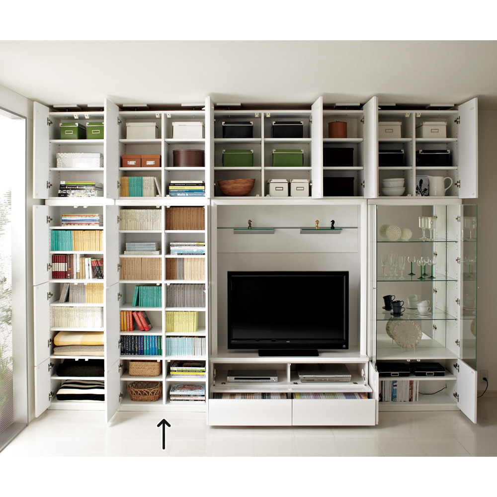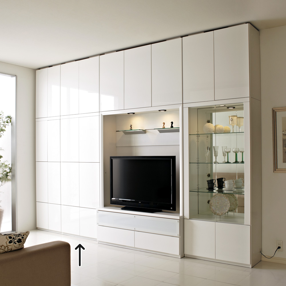 毎日の使いやすさを考えた細かな機能が満載の収納システムだから日々の暮らしに馴染みます。オーダーメイド感覚で組み合わせて充実のディスプレイ壁面収納を。「使いやすさ」と「美しく上質なデザイン」を兼ね備えているから、あなたの暮らしにすっと溶け込みます毎日の使いやすさを考えた機能と、インテリアがランクアップする上質でおしゃれなデザイン。その2つを実現した才色兼備な国産シリーズです。【POINT 1】毎日の使い勝手を考えて、細部にこだわったつくり◎ワンタッチで開くプッシュ式扉すべての扉は軽い力で開閉ができるプッシュ式扉。◎壁との固定をサポートする転倒防止バンド付き◎棚板耐荷重は約20kg3cmピッチで簡単に高さ調節でき、効率よく収納できます。◎配線できるコード穴両側面にコード穴を設けているので、本体内部での配線が可能。【POINT 2】美しい光沢の輝きが持続し、日々のお手入れがしやすい表面材◎ホワイト色は美しい光沢が持続する高品質なハイグロスシートを使用キズや汚れに強く、美しい輝きと透明感が持続します。【POINT 3】上置きを組み合わせて天井までぴったり美しく!同シリーズのサイズオーダー対応突っ張り上置き(別売)を組み合わせれば、天井まで収納空間にでき、見た目にも造りつけのような美しい仕上がりに。