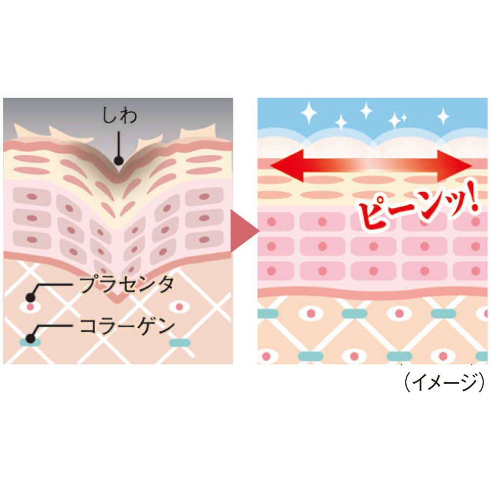 シワなどの凹凸を埋めてピーン! 肌につけると小じわなどの溝が埋まり、乾くと透明の薄い膜を形成してピンと張った状態をキープ。 ※メイクアップ効果による
