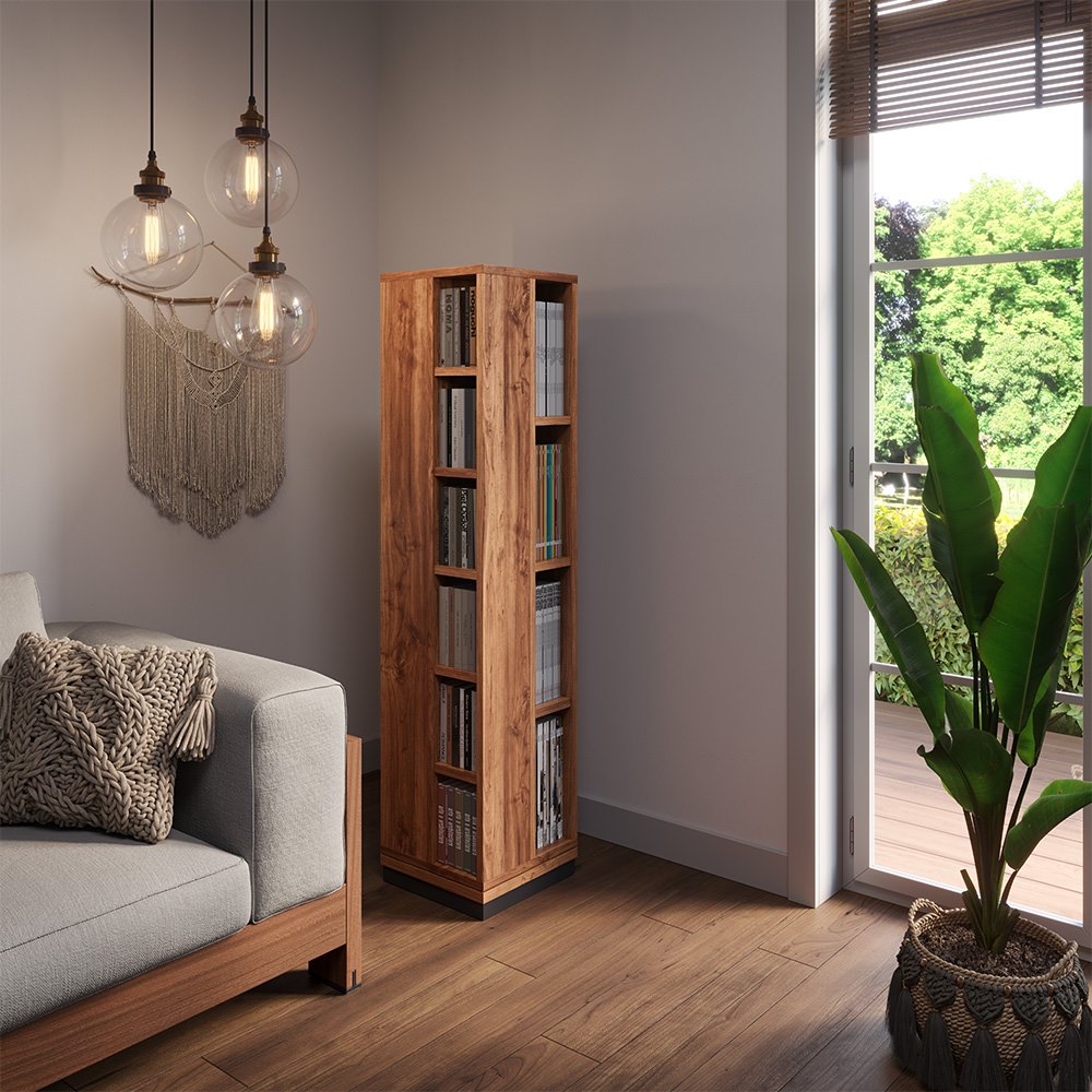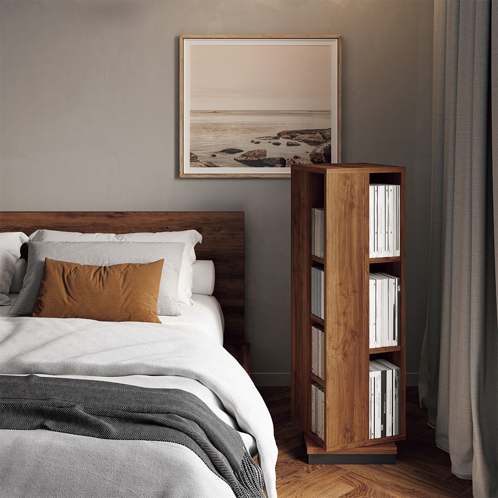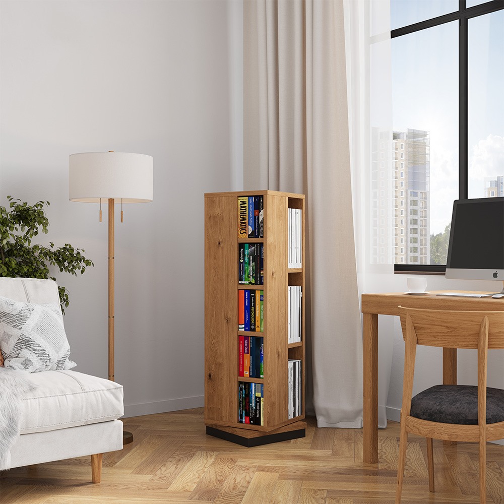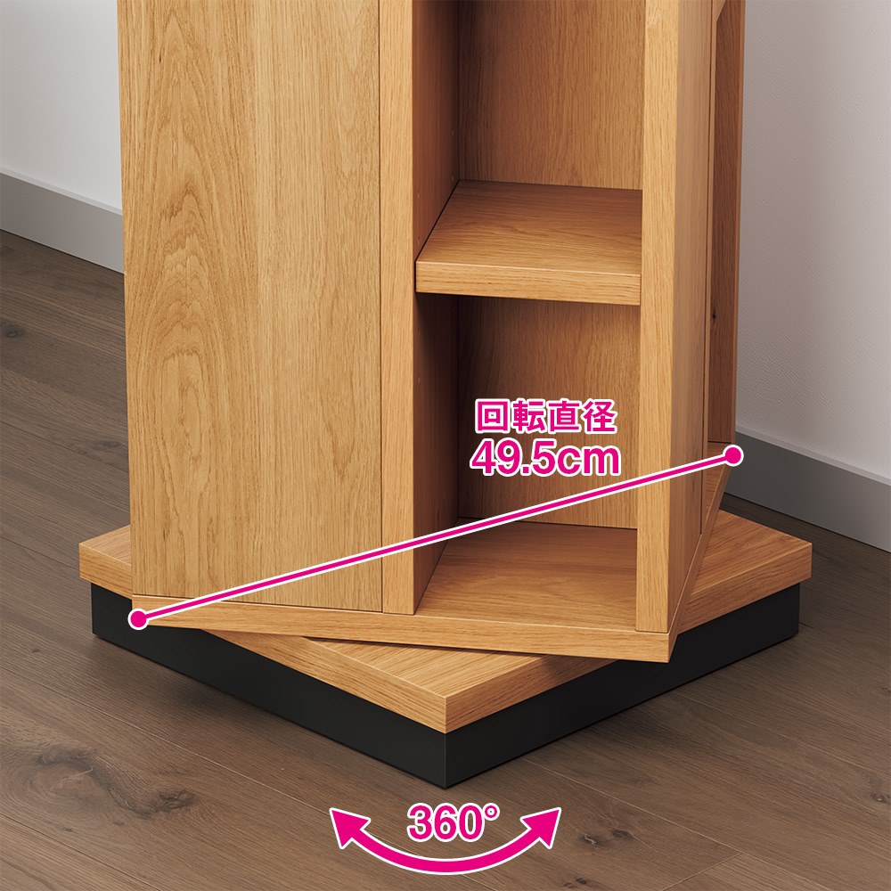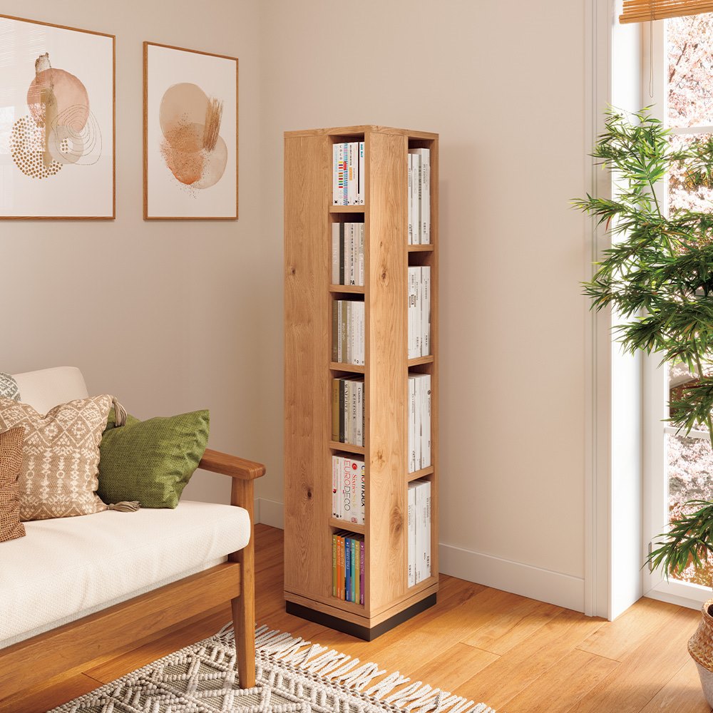 (ア)ナチュラル 収納力とインテリア性を兼ね備えた、回転式ブックラック。