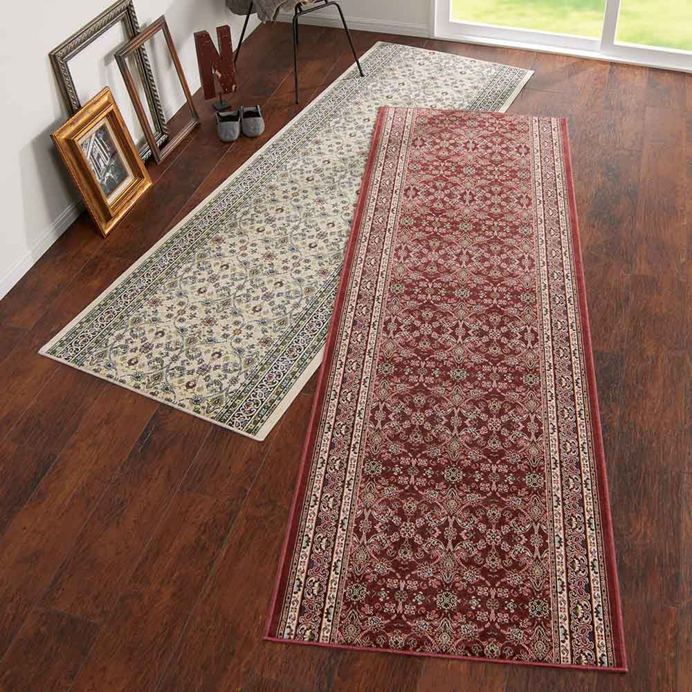 繊細な柄が際立つ、なめらかで高級感のあるモケット織の廊下敷きです。抗菌・防臭機能も備えています。敷くだけで、廊下を華やかな空間にドレスアップしてくれます。キッチンマットやベッドサイドにもおすすめです!
