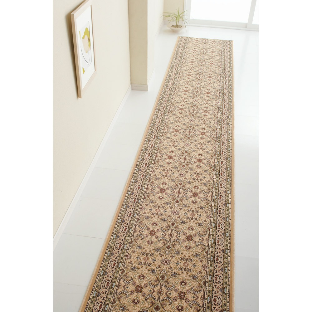 繊細な柄が際立つ、なめらかで高級感のあるモケット織の廊下敷きです。抗菌・防臭機能も備えています。敷くだけで、廊下を華やかな空間にドレスアップしてくれます。キッチンマットやベッドサイドにもおすすめです!