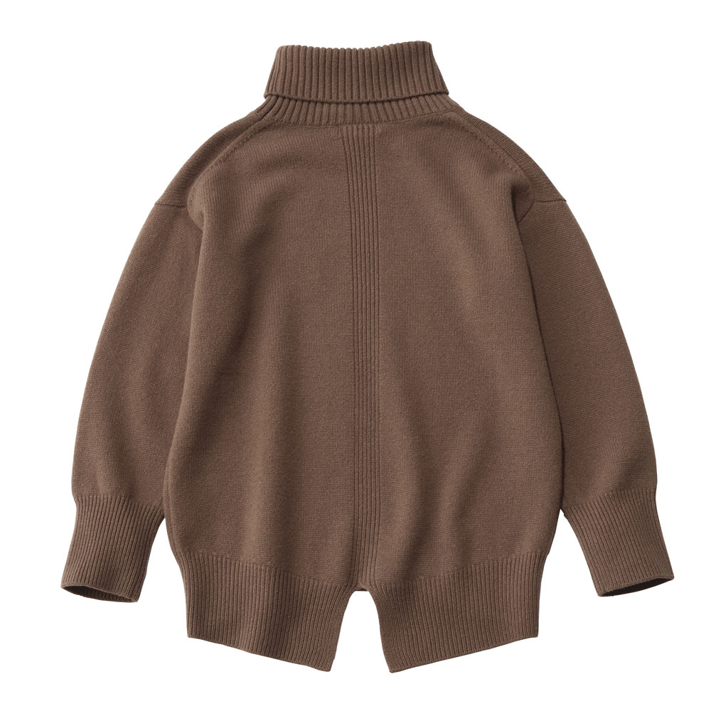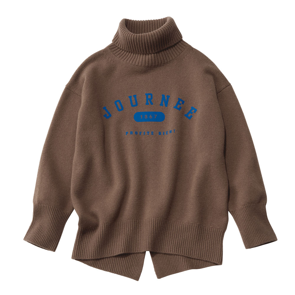 街で着るのが似合う大人のヘルシーカジュアル毎日のスタイリングに欠かせない、程よくカジュアルで、どこかスポーティな旬の服。着映えはもちろん、親近感や好感度も手に入る、冬のマストハブをご用意しました。着映えのカギを握るのは、上品な遊び心のスパイス胸元のカレッジ風ロゴが目を引く、ややオーバーサイズのニット。程よい厚みの暖かなウール素材や、顔まわりに華やぎを添えるタートルネックが、寒い季節のおしゃれ心を刺激します。背面に向けて長くなる裾は、後ろスリットでもたつきを回避。後ろ中央に入れた縦の編み柄で、バックスタイルも表情豊かに。