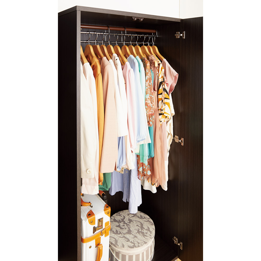 ワードローブにも取り付けられます。※写真は幅63〜90cmタイプです。
