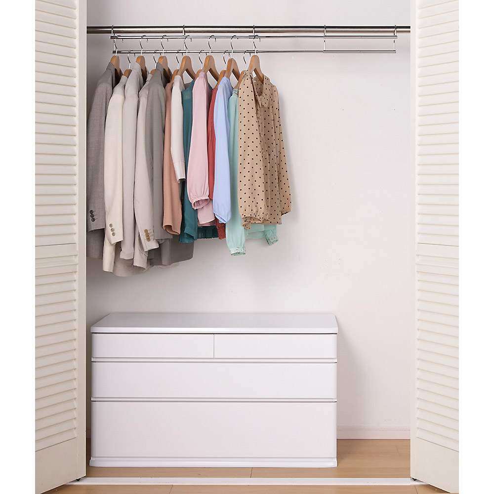 取り付けはカンタン! ハンガーバーにかぶせるだけで取り付け完了。 ※写真は幅109〜155cmタイプです。