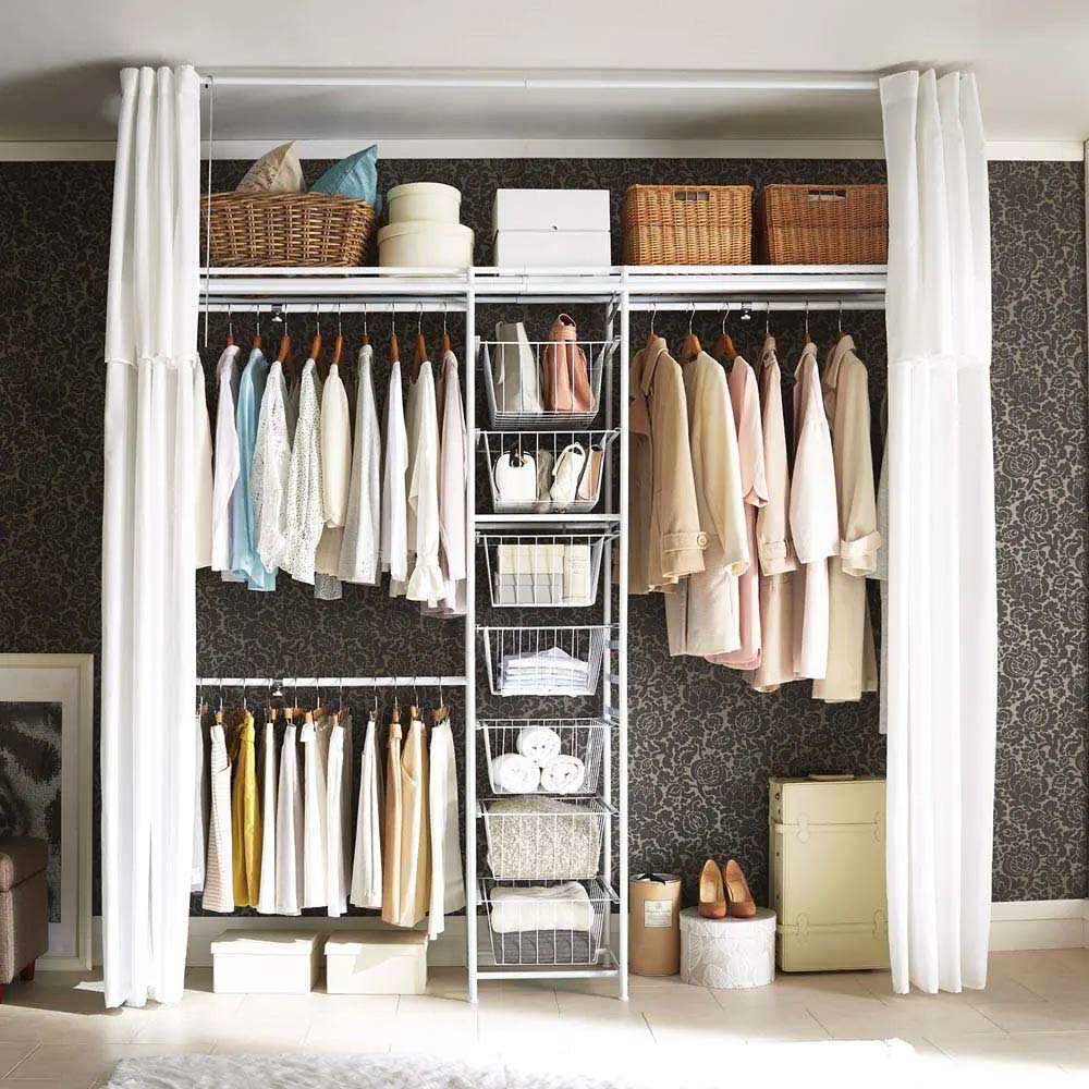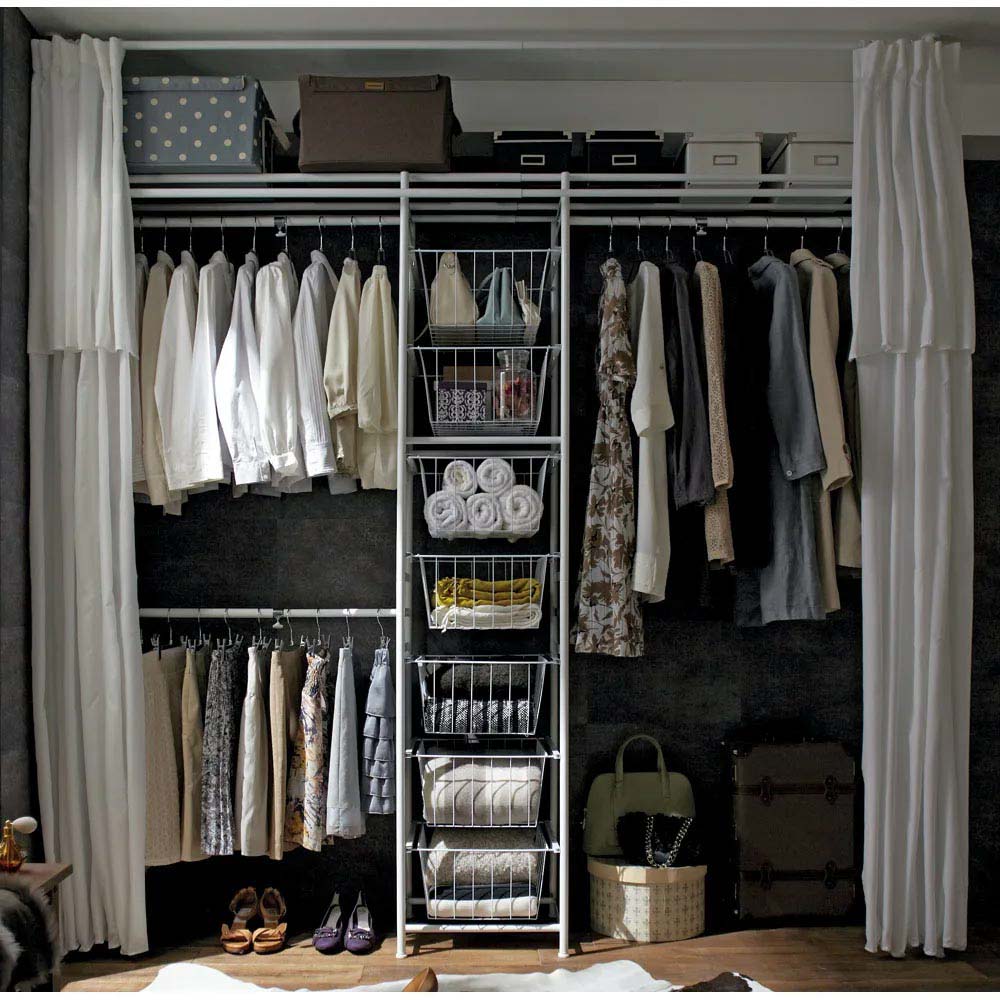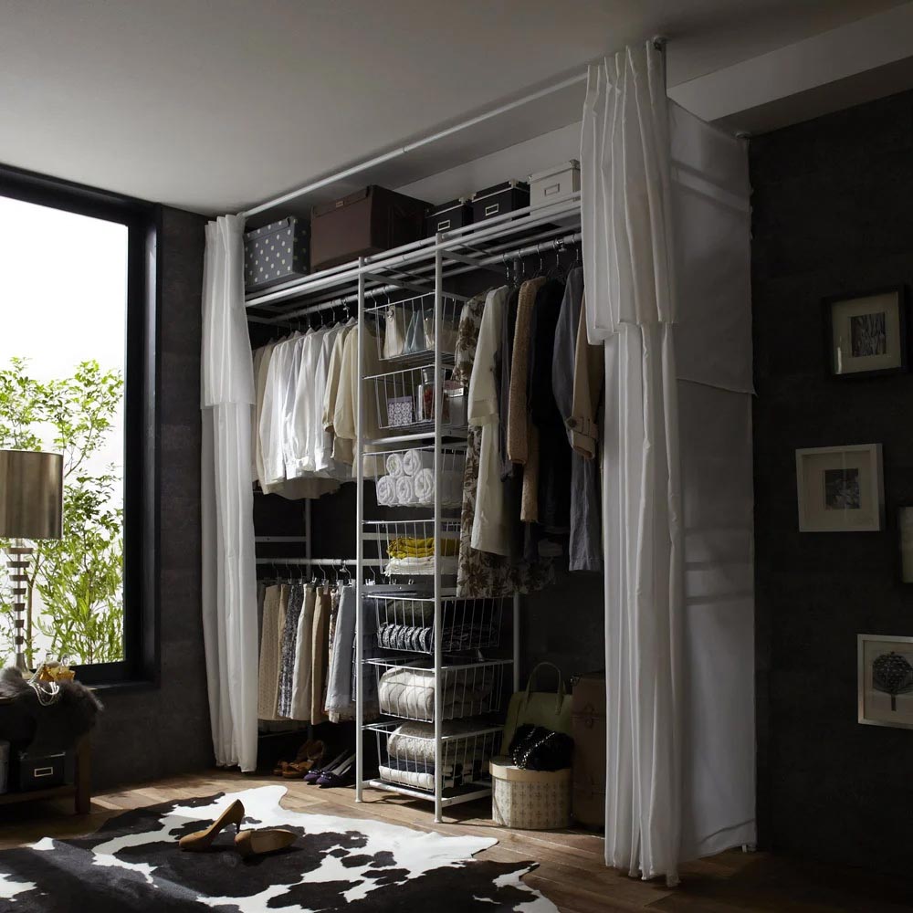 カーテンを閉めれば衣類をスッキリと隠せます。上下左右にカーテン付きで日焼けやホコリから衣類を守ります。急な来客でもサッと隠せて片付けの時短にも。