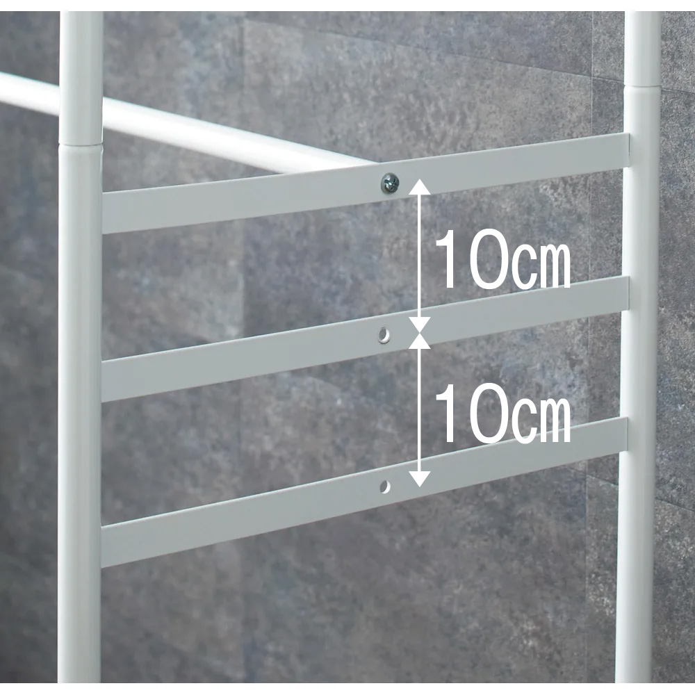 スプリング付きの天井突っ張り式なので、衣類の重さをしっかりと支えます。