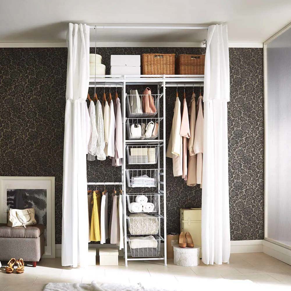 カーテンを閉めれば衣類をスッキリと隠せます。上下左右にカーテン付きで日焼けやホコリから衣類を守ります。急な来客でもサッと隠せて片付けの時短にも。