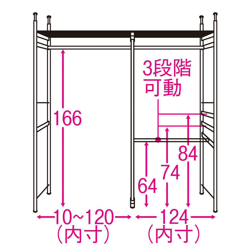 内部の構造図(単位:cm) ※3段掛け部は左右どちらにも設定可能。