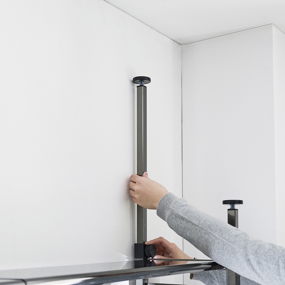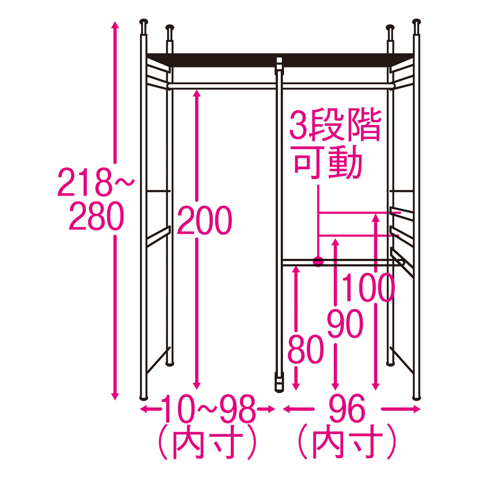 上品な光沢ブラックが洗練された空間を演出する収納ハンガーラック。奥行30cmの薄型だから寝室やウォークインクローゼットなど狭いスペースがおしゃれなワードローブに。幅が伸縮できるから、場所に合わせてぴったり設置できます。〜デザインコンセプト 高級ブランドショップのイメージを〜高級ブランドショップのイメージ。「洗練」「高級感」「上質」そんな言葉が思い浮かびます。そんな言葉を具現化するために何が必要かを考えました。洗練されたイメージを光沢のある仕上げで。高級感の象徴としてブラック色を採用。上質を保つため、第三者公的機関で耐荷重試験を実施。見た目だけでなく、ハイクォリティなクローゼットハンガーラックに仕上がりました。〜ラグジュアリーなデザインが、上質感ただようクローゼットスペースに〜◆高級感のあるブラック色。フォーマルと言えばブラック。そんな言葉を思い起こさせます。◆洗練さを維持する、光沢ブラック仕上げ。都会的なブランドショップを連想させ、大人の雰囲気を大事にしました。支柱・棚・バスケット・補強バーに至るまで光沢ブラック仕上げを採用。◆上質感にこだわったフォルム。直線的なフォルムを出すことで、実を兼ねた上質感を。◆思わずドレスアップしたくなる。いつまでも大人のオシャレを大事にしたい。そんな気持ちにさせてくれるデザインです。◆一日のプロローグもエピローグも、洗練された時間を作り出せそうです。〜洗練されたデザインをバックアップする、信頼の機能〜◆あなたのファッションコレクションをしっかり守るため、第三者公的機関で耐荷重試験を実施しています。◆洋服はやはり増えるもの。伸縮式で収納量に合わせて使えるもの嬉しいです。◆幅111〜200cmと、幅140〜250cmタイプから選べます。◆本体をしっかりと支える突っ張り式。本体を支えるのは当然。梁などにも対応できるのが嬉しい機能です。◆すべての荷重を支える支柱に22mm角パイプを採用。ベースをしっかり作ることで高級感をバックアップしてくれます。◆脚部には高さを約1cm調整できるアジャスター付き。本体をフラットに保つことで、収納するものを更に置きやすく。◆フラットなスペースを確保する、スチール棚を採用。少し小さめの収納物でも設置可能。〜商品担当者 開発ストーリー〜ファッション=私のアイデンティティ。それらを収納するハンガーラックにもこだわりたいものです。洗練された高級ブランドショップの感性と共鳴するクローゼットハンガーを。そんな想いを強くしました。歴史のあるブランドには到底追いつけませんが、「洗練」「上質」という言葉を追いかけて、少しでも近づけるように企画しています。