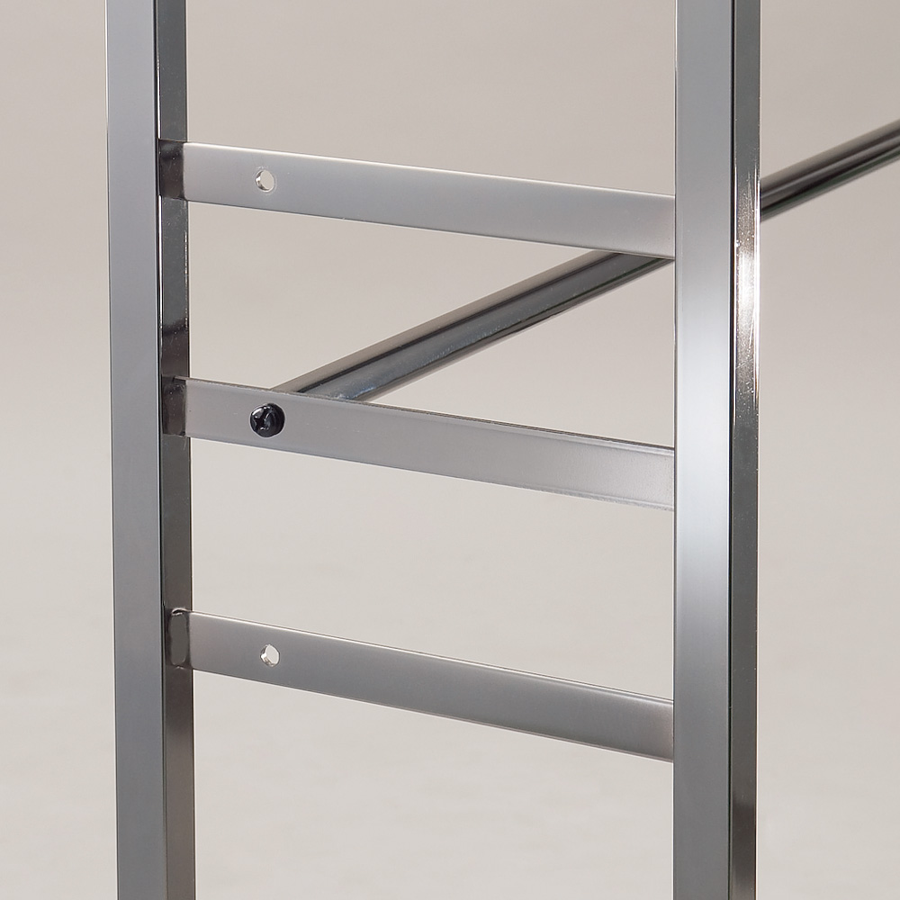 狭いスペースでもたくさん洋服を掛けられる頑丈仕様です。(※写真は左:ロータイプ・幅111〜200cm、右:ハイタイプ・幅111〜200cmです)