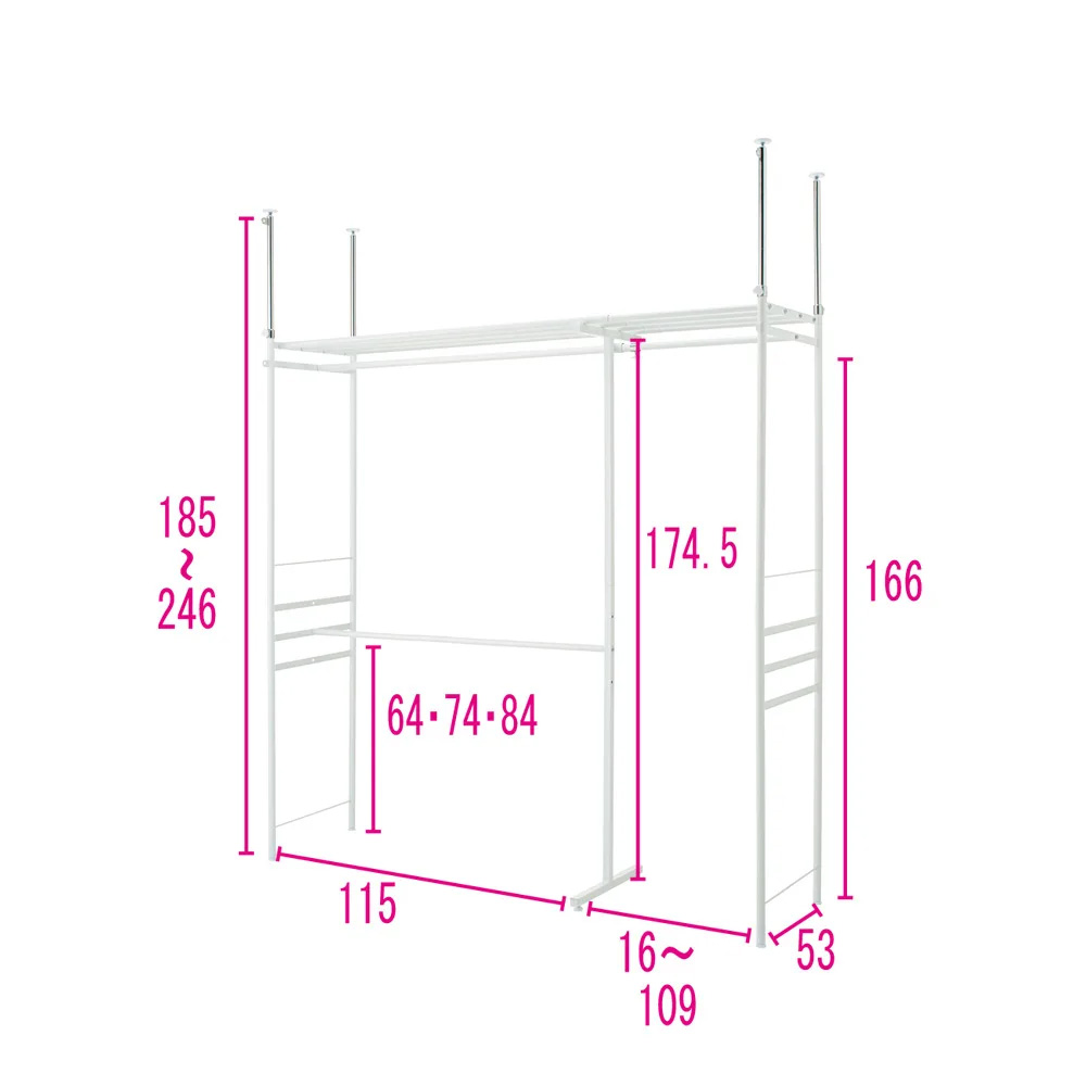 天井の段差や梁にも対応する突っ張り式のハンガーラックです。