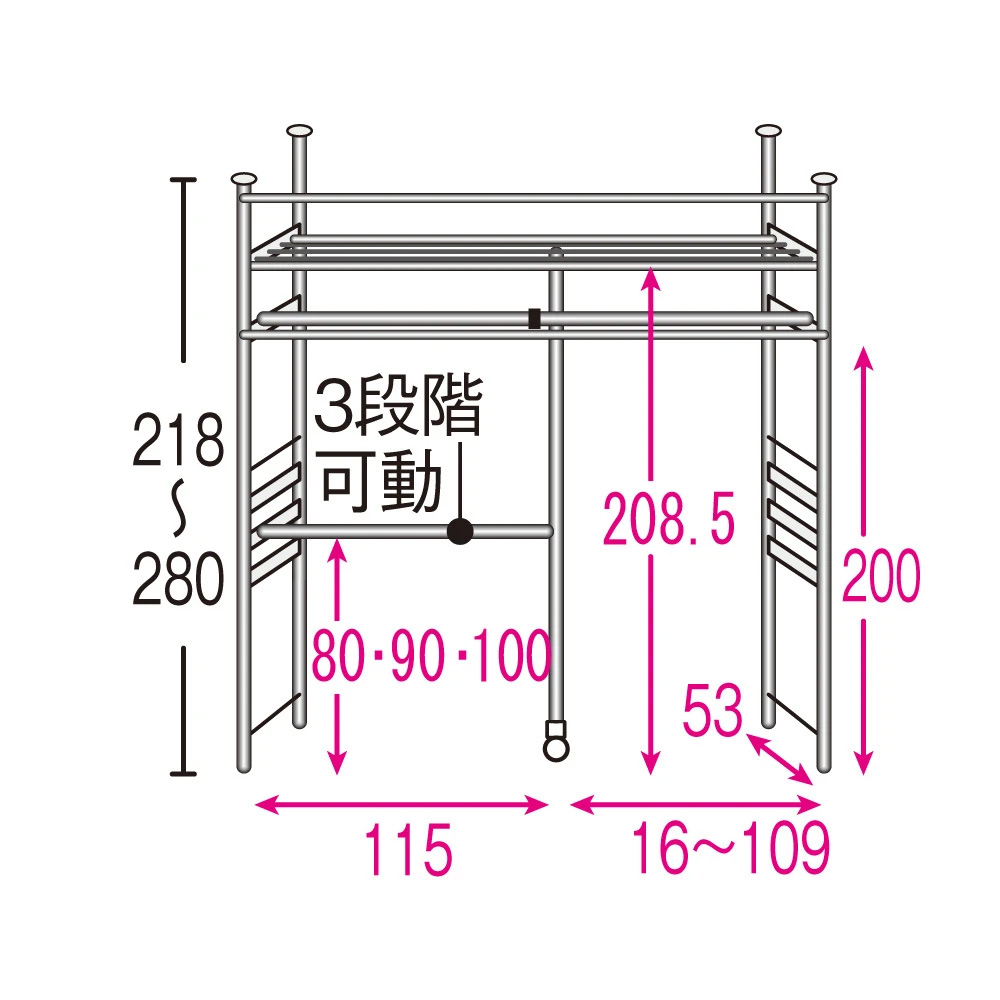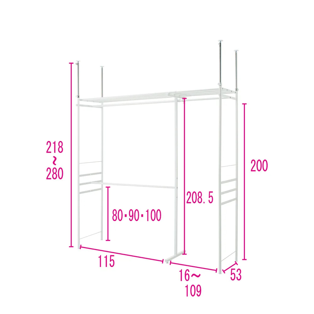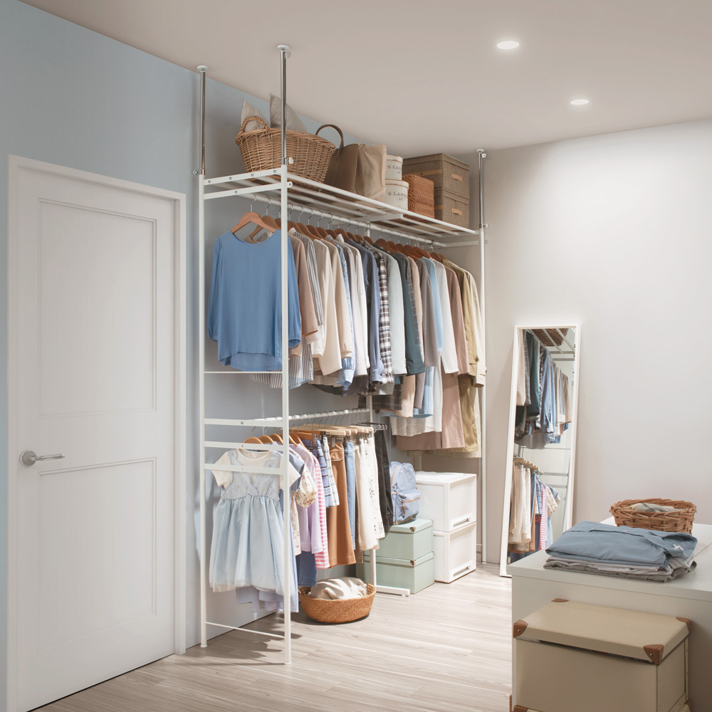 天井の段差や梁にも対応する突っ張り式のハンガーラックです。
