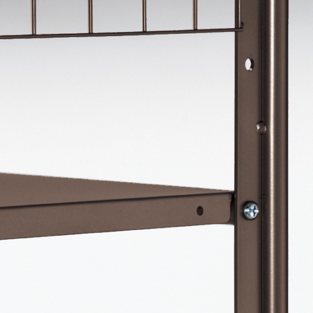 色見本(ア)ダークブラウン デスク上にも 棚の位置は上段でも下段でも設定可能。