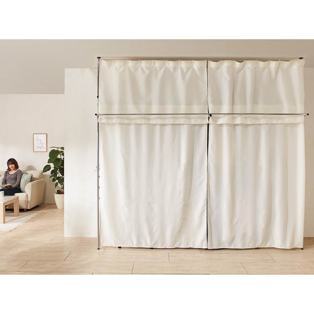 ※写真はハイタイプ(高さ207〜265cm)標準(幅147〜200cm)、別売りのサイドカーテンを使用しています。 ※お届けはロータイプ(高さ185〜243cm)ワイド(幅195〜273.5cm)です。