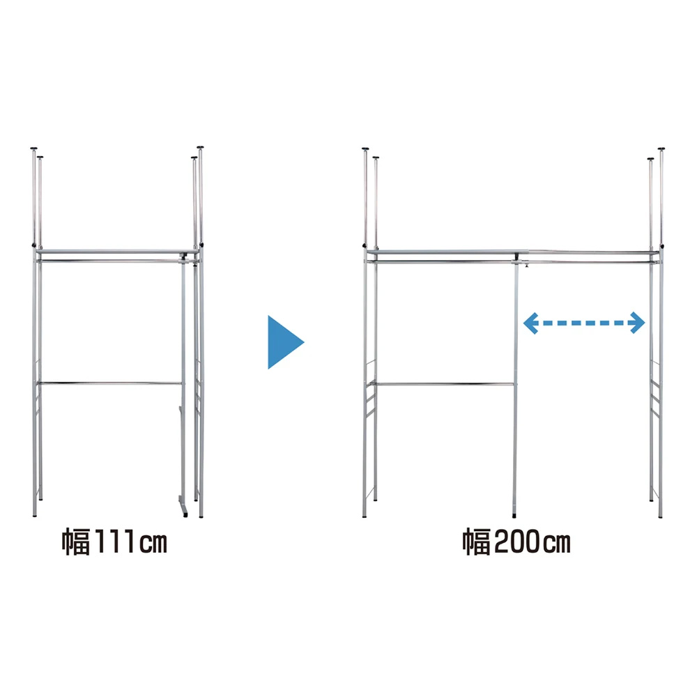 幅111cm〜200cmのスペースで衣類をたっぷり収納できるクローゼットハンガーです。 ※写真はお届けする商品です。