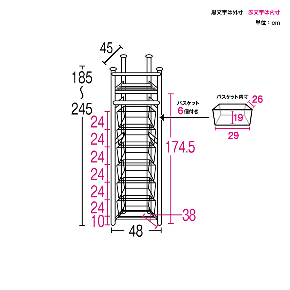 ※赤文字は内寸・黒文字は外寸(単位:cm)