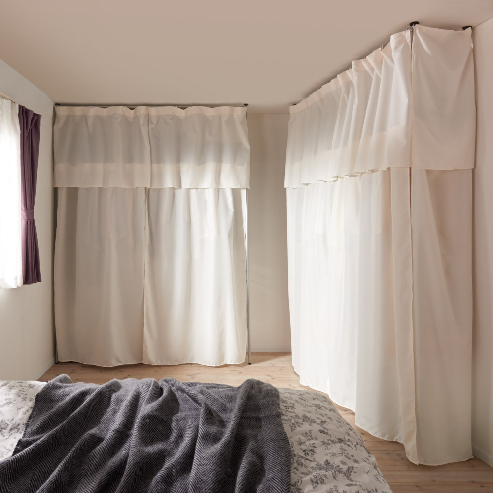 本商品は「ウォークイン突っ張りハンガー用サイドカーテン (ハイタイプ用)」です。片側を壁付けしない方におすすめのサイドカーテンです ウォークイン突っ張りハンガー用のサイドカーテンです。 横からも洋服を見せたくない方におすすめです。 大切な洋服をホコリから日焼けから守ります。全部隠して本格的なウォークインクローゼットに●ウォークイン突っ張りハンガー ハイタイプ用のサイドカーテンです。●洋服をホコリや日焼けから守ります。●収納物を隠したいという方におすすめの目隠しカーテンです。