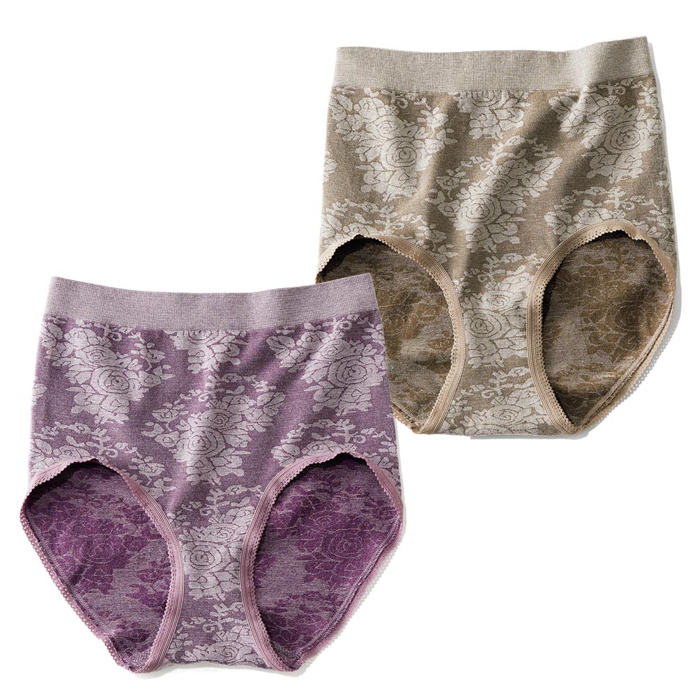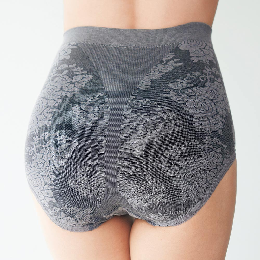 浮かび上がるローズ柄がエレガントな綿混ショーツ6枚組!浮かび上がるローズ柄がエレガントな綿混ショーツ6枚組!鏡を見てため息をつくような、後ろ向きな自分には別れを告げて、今の自分を認めてあげましょう。頼りになるインナーの力を借りて。体型を崩さずにのびのびフィット!着心地を重視したインナーはシンプルすぎて物足りない、とお嘆きではありませんか?そんな方におすすめなのが、こちらのローズ柄のジャカードインナー。シックなダークカラーの3色に加え、新たに春らしいパステルカラーの3色も追加になりました。ジャカード織りだから伸びが良く、快適なフィット感が優秀です。ショーツはお腹もお尻もすっぽり包む深ばきタイプ。こちらも立体編みかつシームレスだから、ヒップの丸みを美しくキープできます。