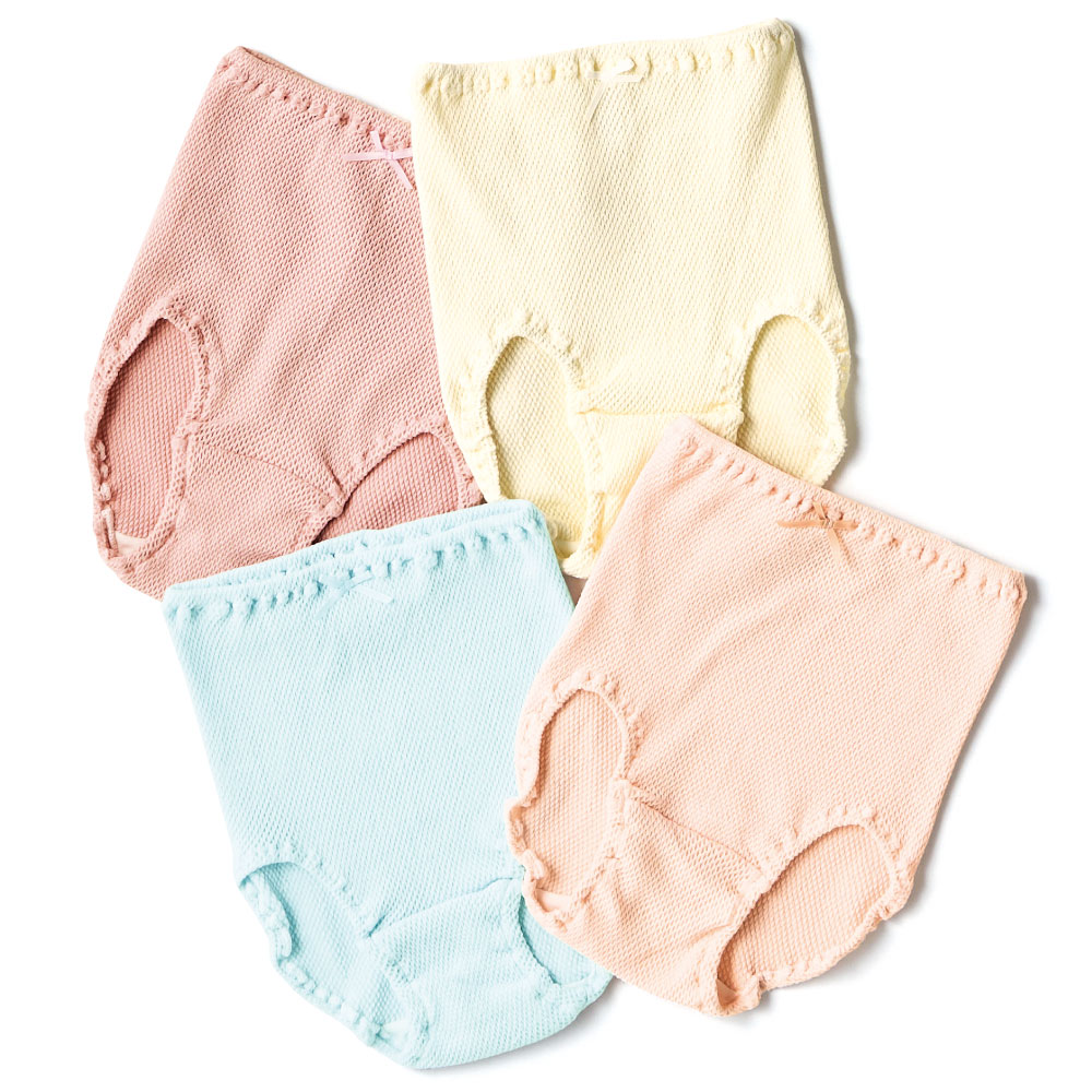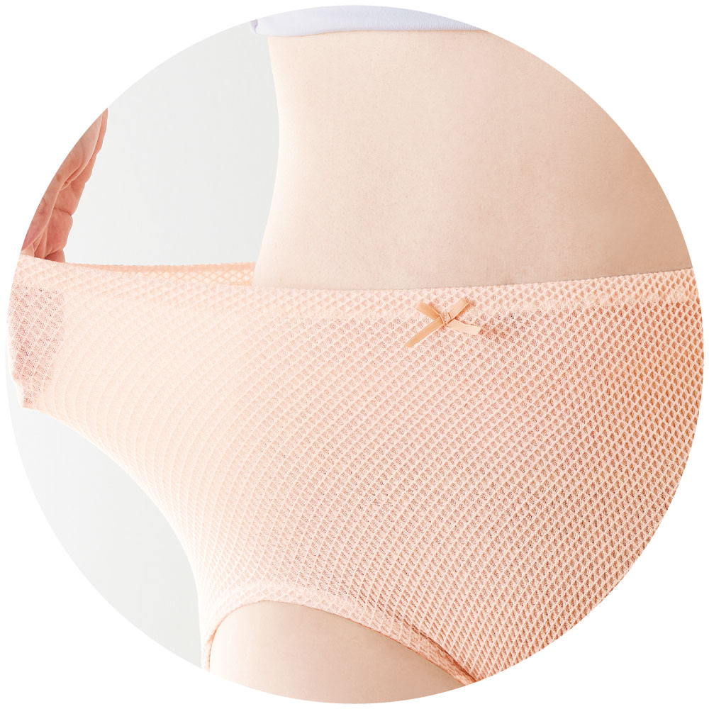 お腹をすっぽり包む柔らか素材の優しいショーツ。ぐんと伸びる締め付け感がないショーツは、ふんわり優しいソフトな肌あたり。生地には凹凸があるので肌に密着せず、夏でもさらっと快適に過ごせます。サイドには縫い目がなく脇がごろつかないため、はいていることを忘れそうな心地よさ。