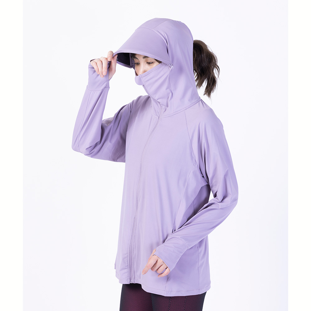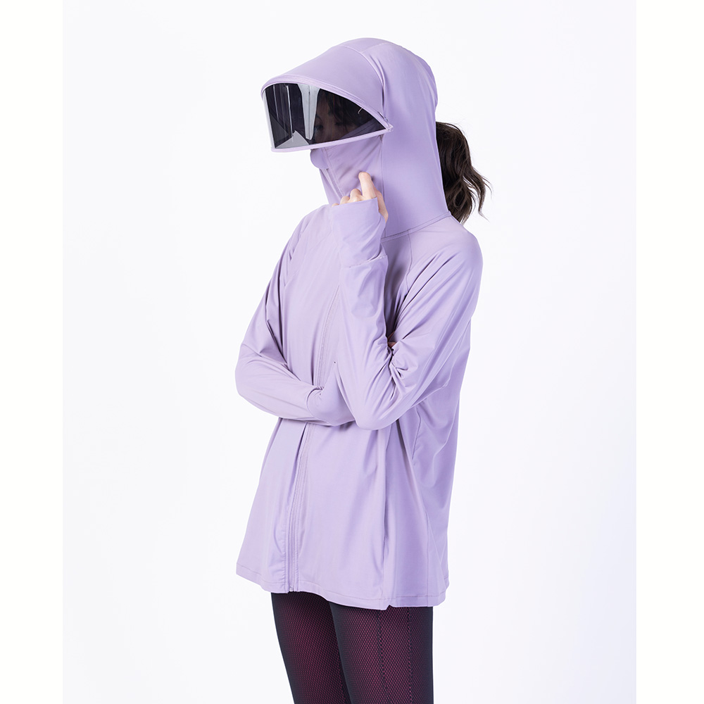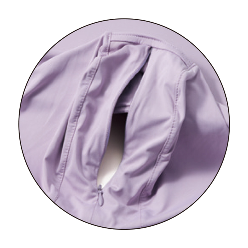 フード裏にはポニーテールの毛束を出せるファスナー付き。 ラベンダー