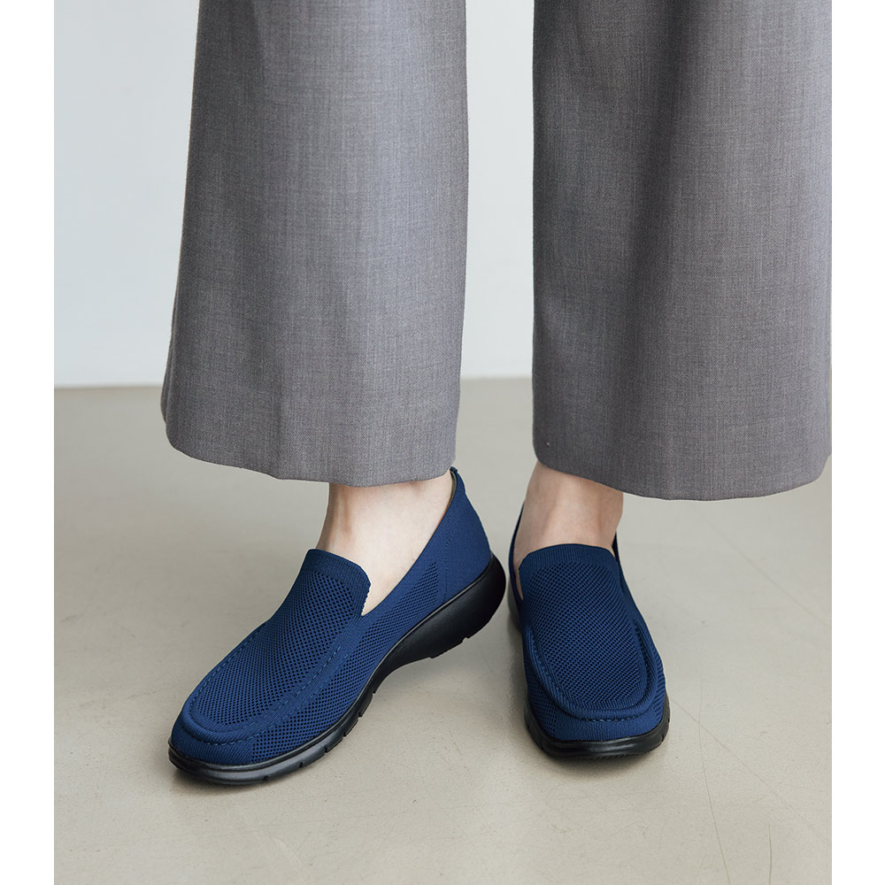 ゆるっとラフに履けるニット素材でも、足を包み込むようなホールド感が心地良い。かかとクッションがフィット感をアップ。きちんと感がありつつも、どこか抜け感のあるスタイルに仕上がります。