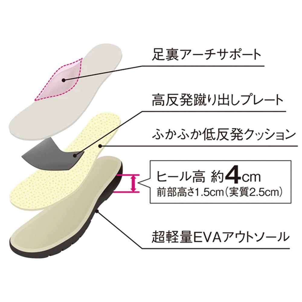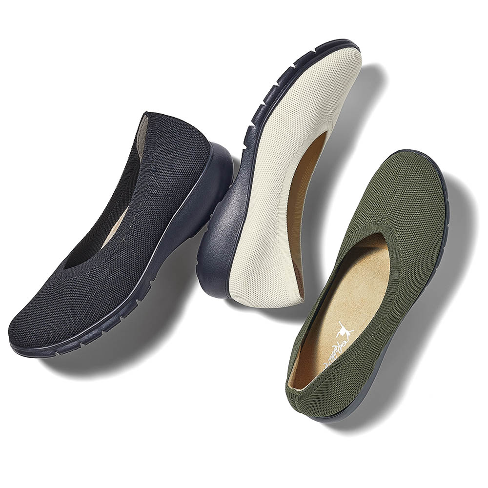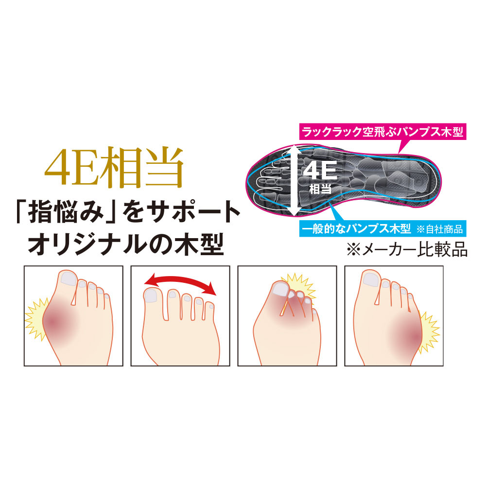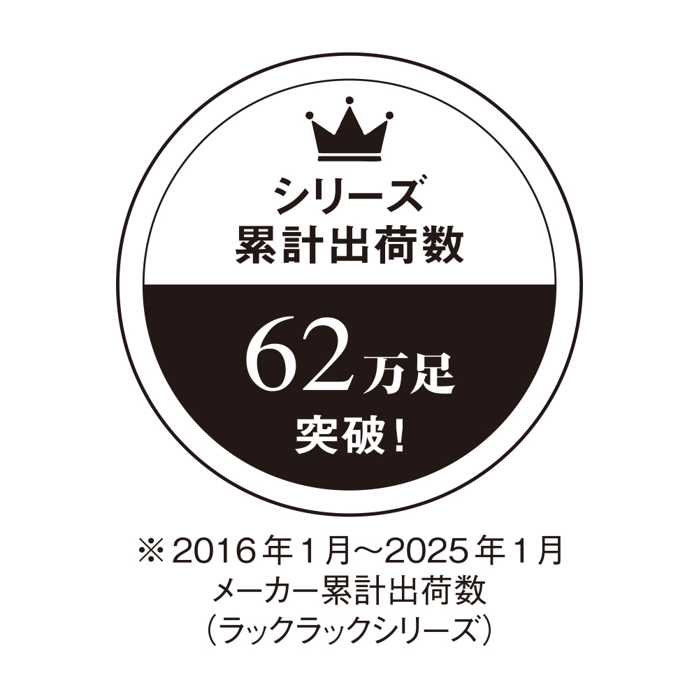 【WEB先行】人気のラックラックから足当たり優しいニット素材登場!累計出荷足数62万足超え!※ 人気のラックラックにニット素材パンプスが新登場。ニットは足当たりが優しく、個々人の足にフィットする人気の素材。かかとには靴擦れがしにくく、フィット感をあげてくれるパッド付き。まるごと洗えるのも嬉しいポイント。※2016年1月〜2025年1月 メーカー累計出荷数(ラックラックシリーズ)まるで素足感覚の軽やかさ これがラックラックのこだわり・アウトソールには軽量素材のEVAを使用。一番小さい22.0cmで片足約99gの軽量仕様です!・伸縮性と屈曲性を兼ね備えたソールが無理な圧迫感を感じさせずに足にフィット。歩行時の足の動きをサポートします。・中敷きには土踏まずのアーチサポートが付いた低反発クッションも搭載しています。曲がる!弾む!足の動きを邪魔しない屈曲性を実現!心地の良いフィット感と、屈曲性で、足の動きを邪魔しない!だから、歩ける、走れる!弾むような歩行で楽しく歩けます。ラックラックの軽さと屈曲性が、一歩一歩の歩幅を大きく、歩くスピードをスムーズにサポート。