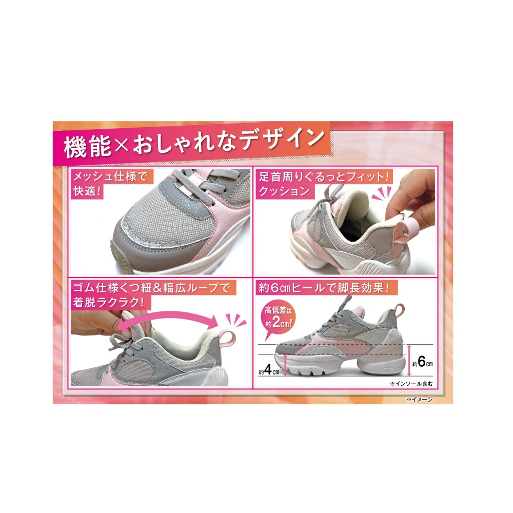 メーカー直販価格 16800円(税込)⇒ 5520円お得!※G-STARS直販サイトにおいてダンスシューズから着想オシャレ×機能性のこだわりの一足自然と軸が意識できるように設計された内側傾斜のインソールと、足裏を柔軟に使える屈曲性のあるくびれソールが特徴。厚底で履くだけでスタイルよく見え、手を使わずに着脱できるデザインも便利です。