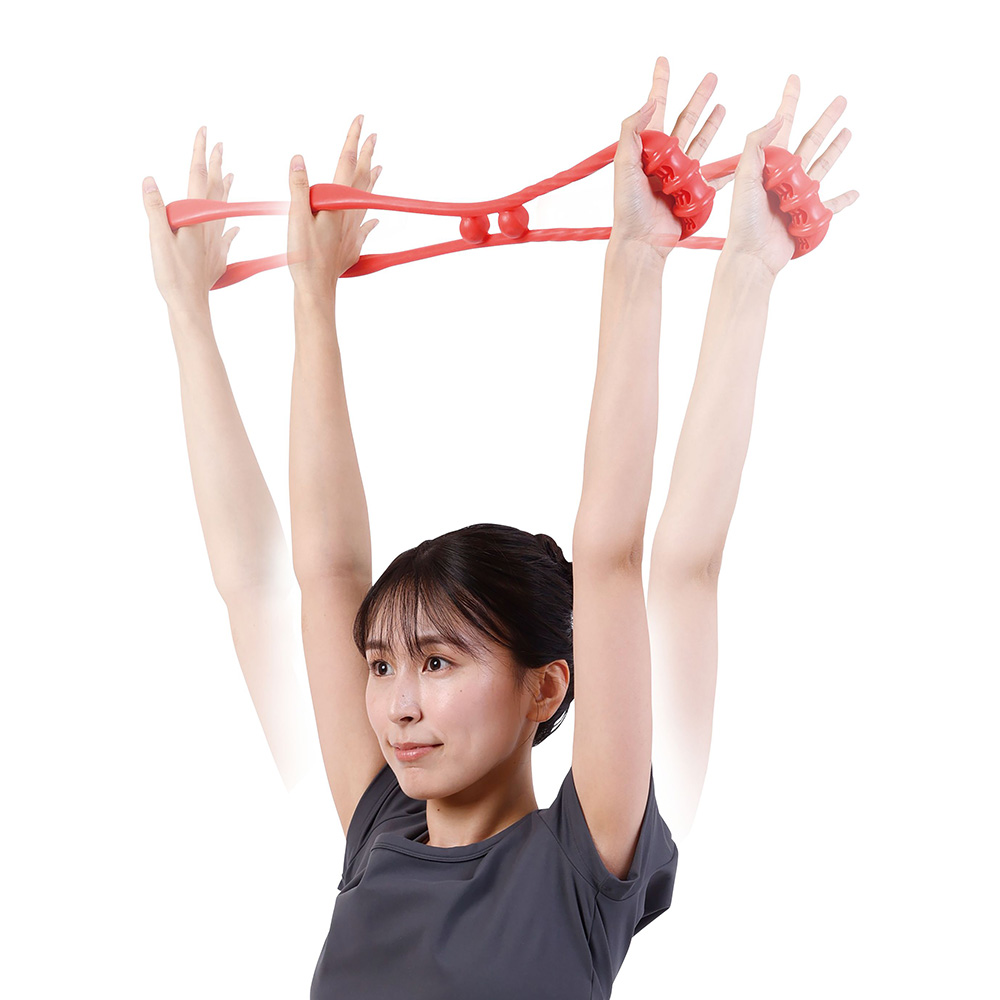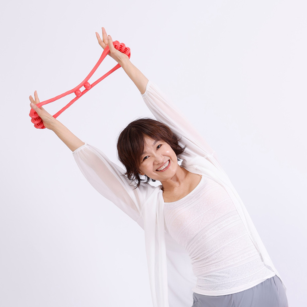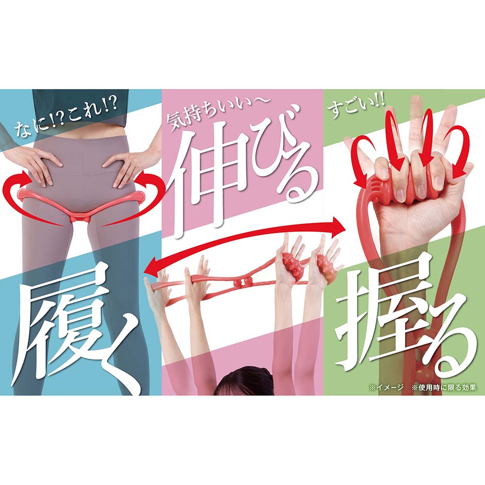 「握る!」「伸ばす!」「押す!」1つで3役の健康バンド!毎日簡単に楽しく使って手軽に全身エクササイズ!トレーナー歴40年以上のカリスマボディメイクトレーナー樫木裕実さんがこだわったフィットネス用ゴムバンド。ゴムバンドを握って伸ばすことでストレッチをしたり、脚に輪を通せば、骨盤周りや下半身周りのエクササイズも可能です。バンドの凹凸部分を握ったり、身体に当てたりすることで、筋肉のコリほぐしにも。【効果効能※】あんま、指圧の代用健康によい血行をよくする筋肉の疲れをとる筋肉のこりをほぐす※凹凸部で身体を刺激することによる。※指圧代用器として