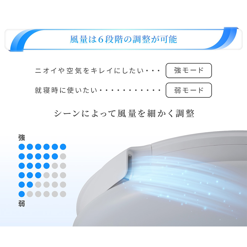 温度ムラを解消&キレイな空気を放出して室内を快適に3つのファンを内蔵したLEDスマートシーリングファンに、新タイプが登場!従来タイプの利点はそのままに、空気循環の性能や集塵機能がパワーアップしました。(※こちらはナチュラル色です。ホワイト色は別品番となり、価格が異なるのでご注意ください。ホワイト色はページ下部「おすすめの関連商品」よりご確認ください。)薄型シーリングライトに3つのファンを内蔵部屋を明るく照らしながら、3つのファンでお部屋の空気を吸い込んで拡散させるサーキュレーターとしての機能も。エアコンの冷気を循環させて室内の温度ムラを解消するので、冷暖房効率がアップ!吸い込んだ空気は、ハウスダストをフィルターで吸着し、UV-A照射によってクリーンに。よりキレイな空気を送り出します。取り付けは引っ掛けシーリングに掛けるだけ!取り付け工事は不要!天井についている引っ掛けシーリンクにかけるだけなので、女性でも簡単に取り付けられます。独自構造で室内の空気をパワフルに循環3カ所に内蔵された小型ファンが強力に空気を吸引&放出。ファンの送風口から送り出された空気の流れが本体の外周に沿って回転し、風の渦が室内の空気を攪拌、循環するように設計されています。温度ムラを解消して冷暖房効率アップ!お部屋の空気が循環することで、室内の温度ムラも軽減。エアコンなどの冷暖房機を併用することで、冷暖房効率が上がります。新フィルター搭載でより細かなホコリや汚れをキャッチ!従来型よりも面積が2倍大きいフィルターを搭載。集塵能力が従来品よりも約29.4%アップしました。(国内第三者機関調べ JEM1467準拠 従来品とのメーカー自社比較)排気方向を調節し、吸い込む空気と送り出す空気がぶつからない設計で、空気中のホコリがより吸いやすくなりました。風量は6段階の調整が可能ニオイや空気をキレイにしたい時は「強モード」、静かに使いたい就寝時は「弱モード」など、シーンによって細かく調整できます。スマホやタブレットがリモコンに!調光、調色はもちろん、設定した時間に向けて徐々にライトが明るくなるおはようタイマー機能や、設定した時刻に消灯してくれるおやすみタイマー等、便利機能がたくさん! GoogleアシスタントやAmazon AlexaなどのAIスピーカーにも連動し、音声で操作もできます。4つのパワーアップポイント!(1)空気循環性能がアップ 風量アップに加えて、風を送り出す角度を調整することで空気循環性能をアップさせました!(2)ホコリを吸いやすくする構造に フィルターの面積を従来型の2倍にし、吸い込む空気と送り出す空気がぶつからない構造で空気中のホコリがより吸いやすくなりました。(3)ファンの強弱が3段階→6段階に 強弱を6段階で調節でき、好みや使用環境に合わせた設定ができるように改善。場面に合わせた静音性も選べます。(4)UV-A照射による、空気の清浄機能をプラス より排出する空気をキレイに。